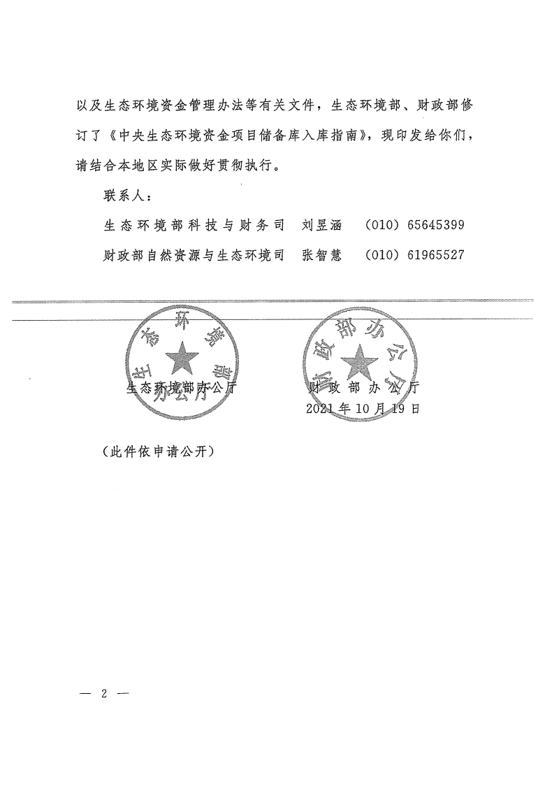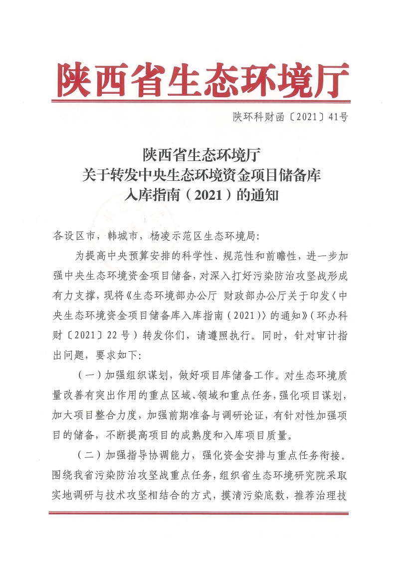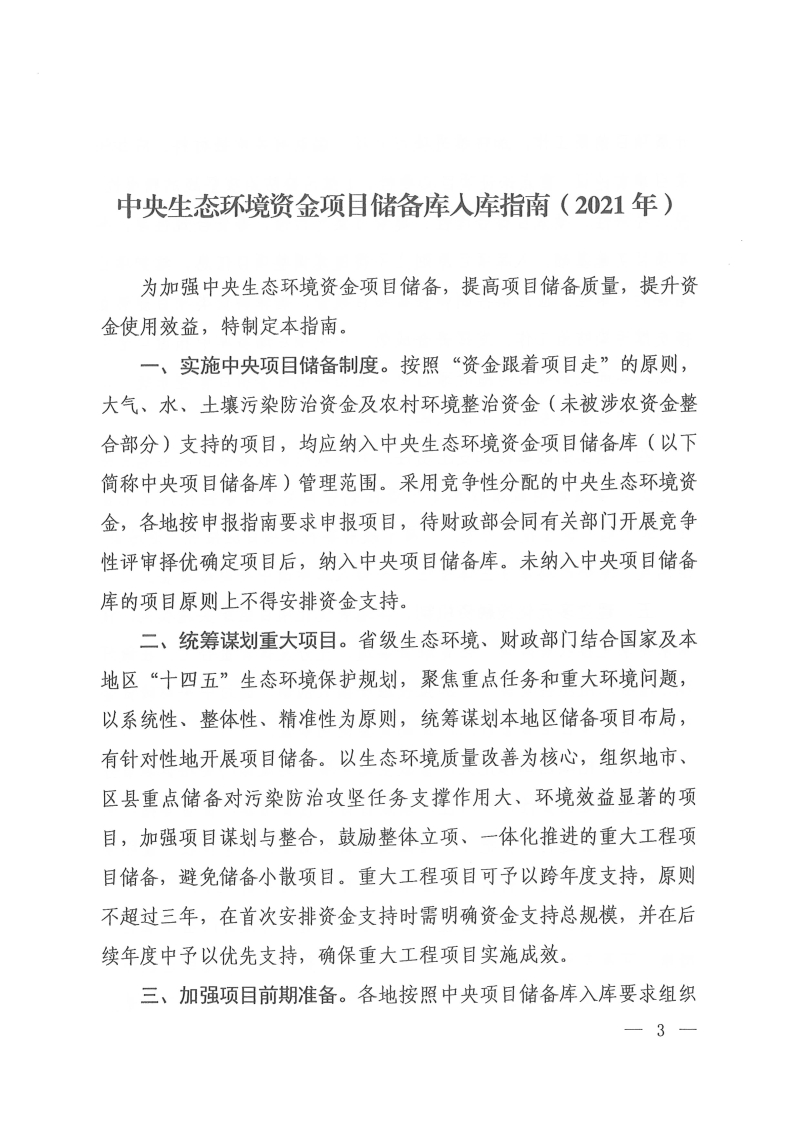 关于转发中央生态环境资金项目储备库入库指南(2021)的通知