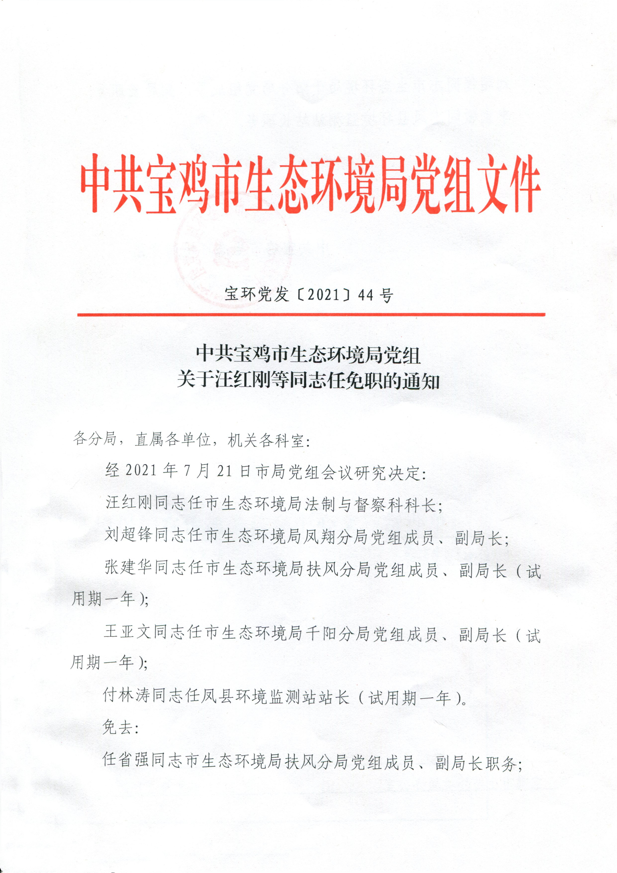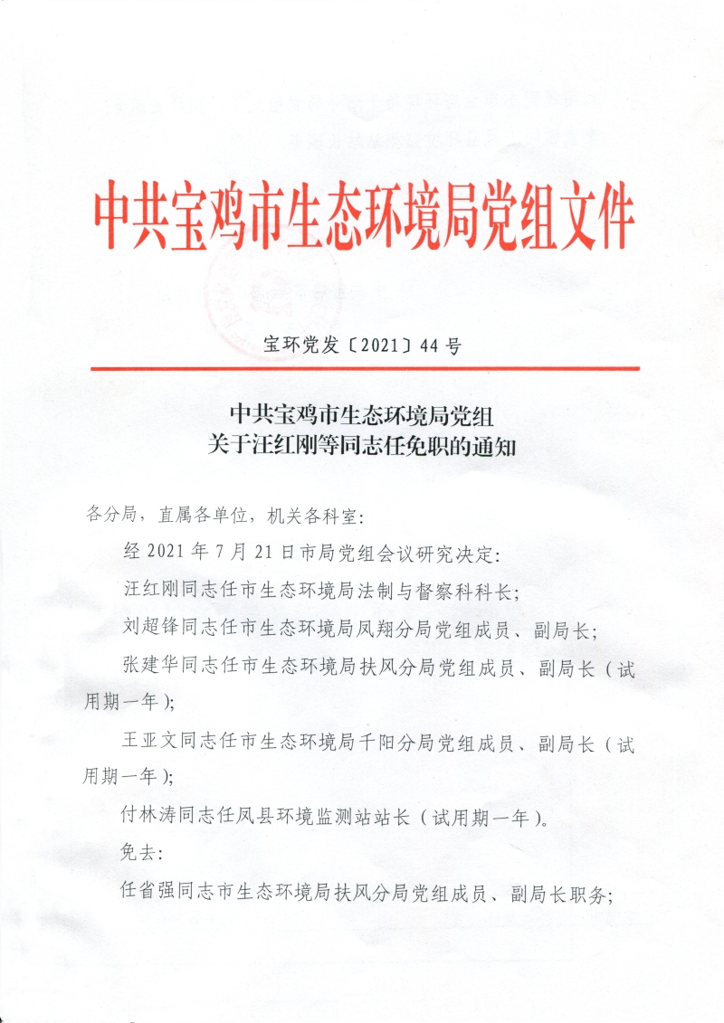 中共十大网赌平台排行榜党组关于汪红刚等同志任免职的通知