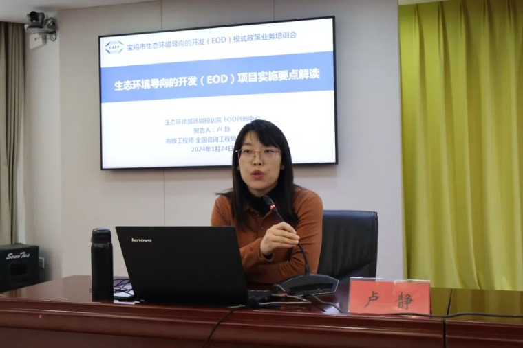 培训会邀请生态环境部环境规划院EOD创新中心副主任、高级工程师卢静,工程师罗荣昌及陕西省环境科学研究院工程师王永平3位专家围绕EOD模式核心要义、融资机制、创新发展等方面,详细解读了EOD模式背景意义、创新模式、项目解析、申报政策、环境治理成效、推进路径及实施流程等内容。并结合我市污染治理现状,针对渭河沿线重点支流整治、农村环境综合整治项目谋划等方向,类比分析成功案例,帮助出谋划策。