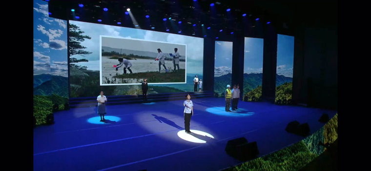 “让我们一起用黑色的眼睛,看绿色的世界,不仅有诗和远方,也有青草故乡……” 新颖的情景剧形式,情感饱满的表演,将全场氛围推向高潮。舞台上塑造的一代又一代的环保人步履坚定,在打赢污染防治攻坚战的路上勇往直前的鲜活形象和感人故事,深深地感染了每一位观众,现场掌声不断。
