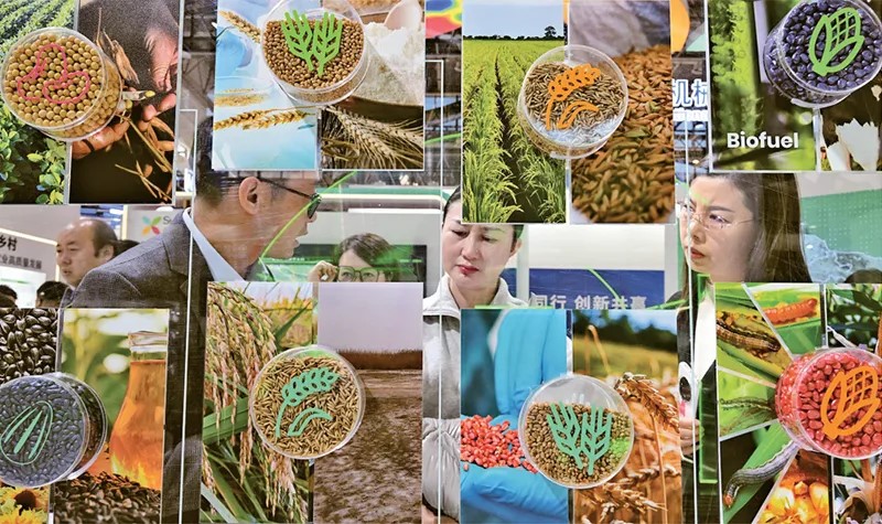 各地积极发展新质生产力,为高质量发展注入新动能、塑造新优势。图为2023年11月30日,在首届链博会绿色农业链展区,参观者在展台前了解种子研发情况。当日,这里聚焦农业产业链的核心环节、关键技术及产品,重点展示种子研发、智慧农业应用、现代智能化农机设备和富有地域特色的农业加工品,并配套展示农业相关的金融、物流等服务,为观众展现出一幅共创绿色农业未来的新图景。新华社记者 李贺/摄
