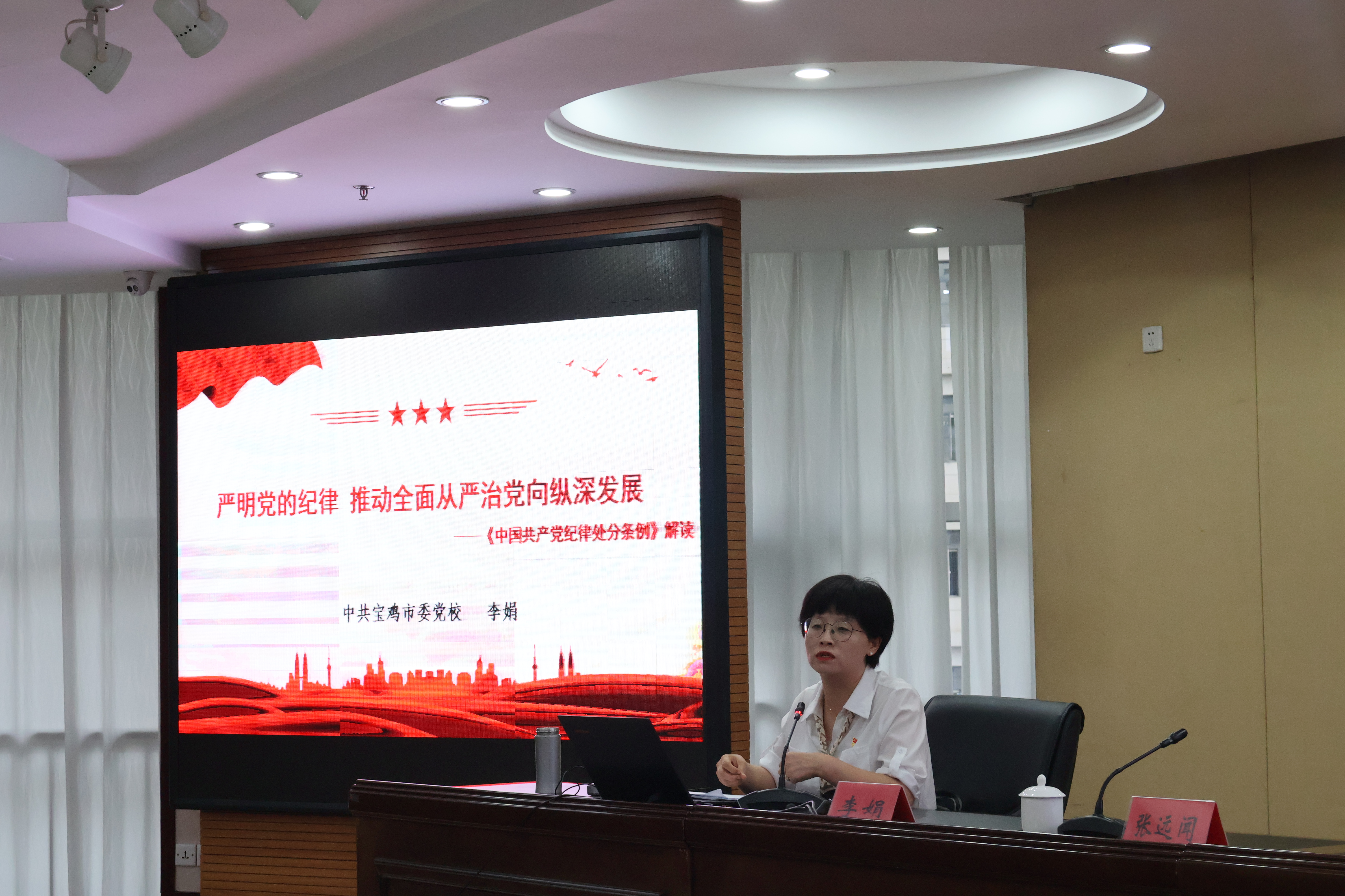 会议邀请中共十大网赌平台排行榜委党校副教授李娟作题为《严明党的纪律 推动全面从严治党向纵深发展》的专题辅导,以《条例》的修订背景入手,结合典型案例,旁征博引,深入浅出地诠释了六大纪律的主要内容,阐明了贯彻落实《条例》要做到讲政治、有信念,讲规矩、有纪律,讲道德、有品行,讲奉献、有担当,自觉做政治上的明白人、明纪守纪的践行者。