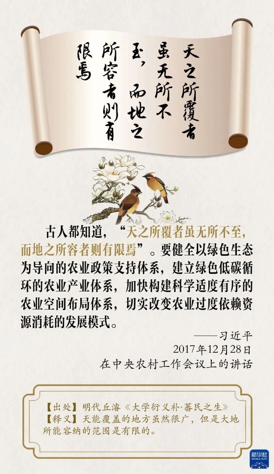 中华民族向来尊重自然、热爱自然,绵延5000多年的中华文明孕育着丰富的生态文化。习近平总书记曾多次引用古语典故阐述生态文明,让我们一起品读,领悟其中的深刻警示和启迪。