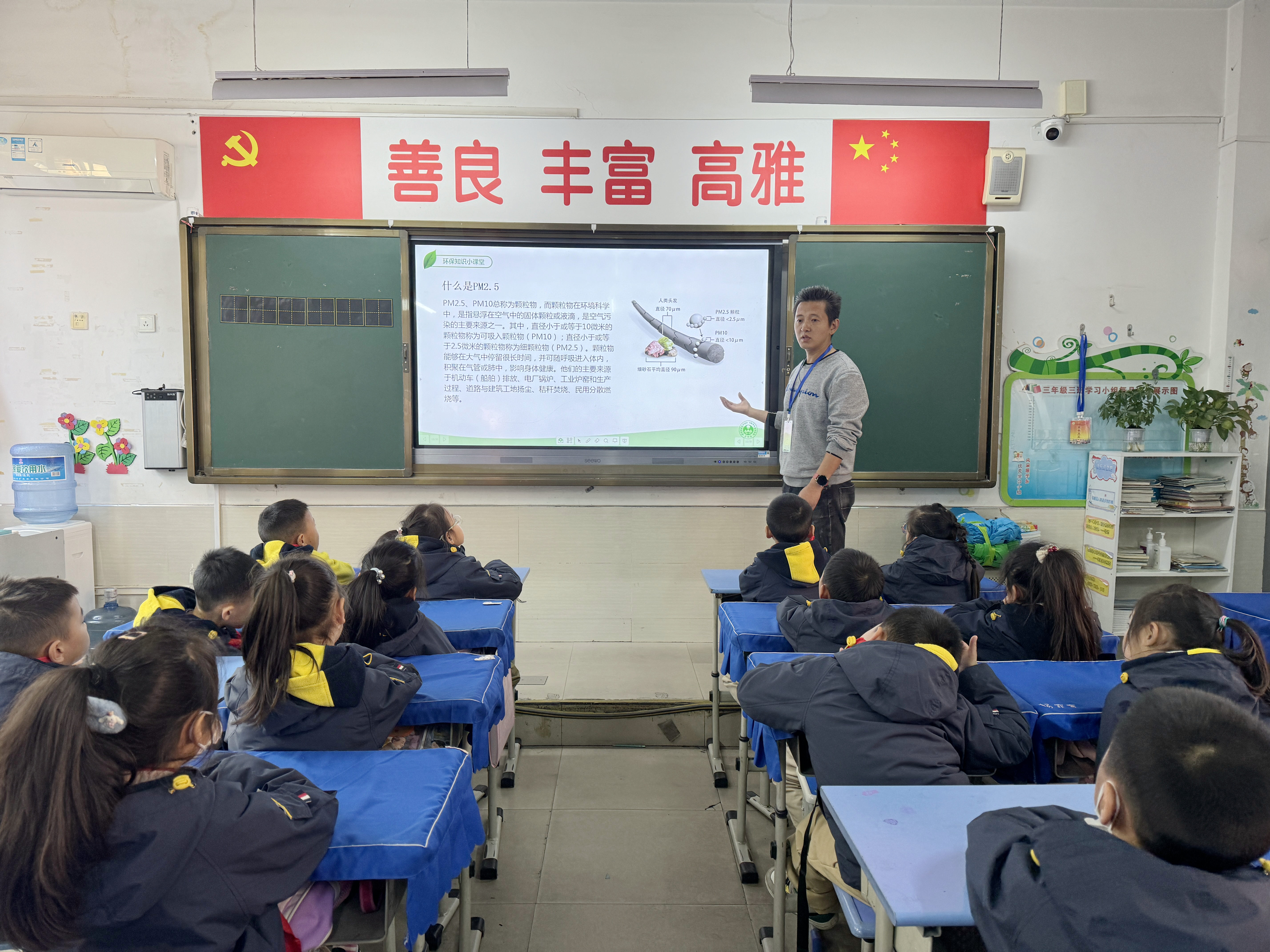 课堂上,工作人员为学生们讲解了有关环境污染、垃圾分类;雾、霾、PM2.5以及如何减少对空气及环境造成污染等方面内容。积极宣传焚烧秸秆、燃放烟花爆竹的危害,将生态环保理念融入校园。