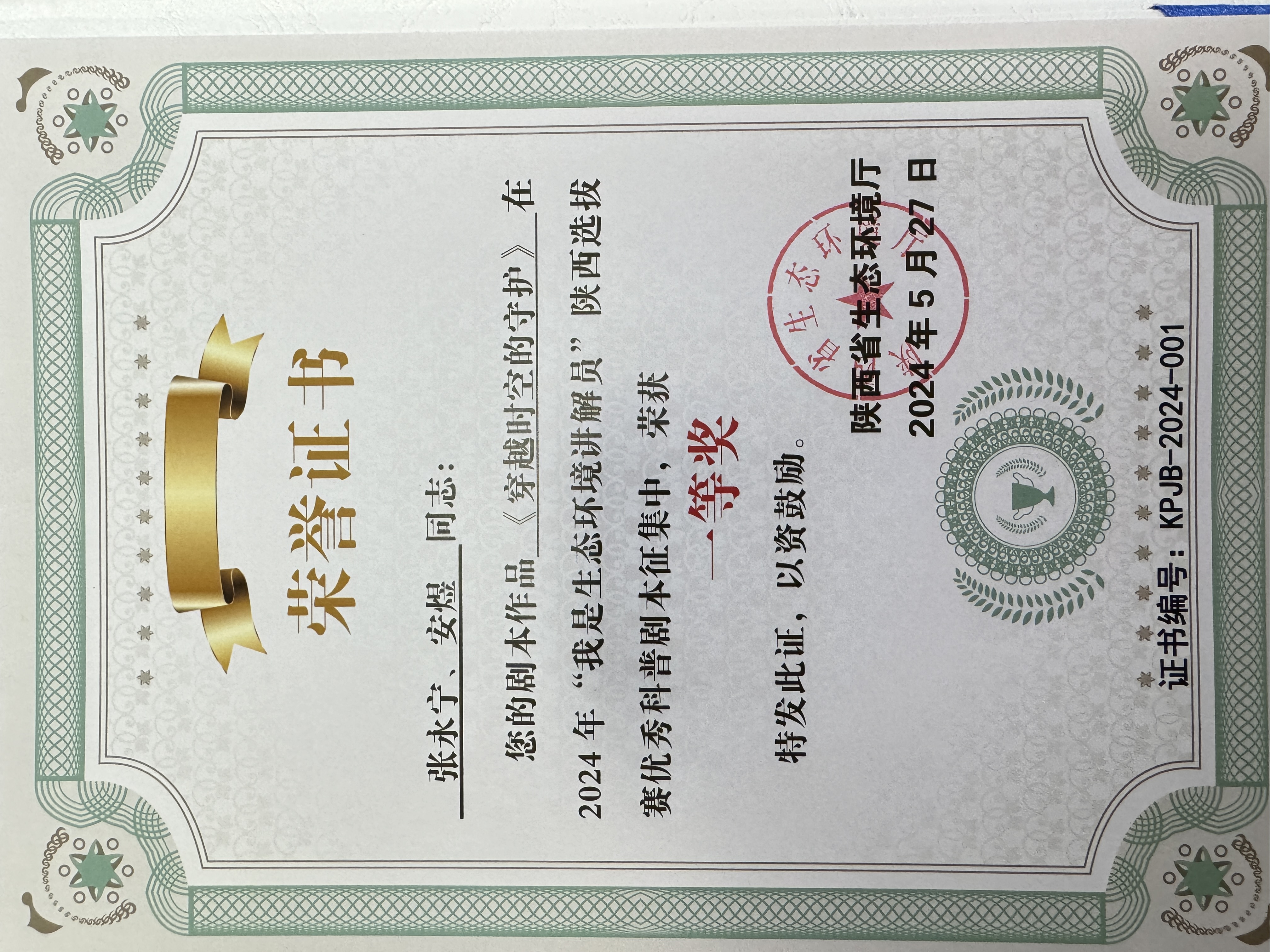 5月27日,2024年“我是生态环境讲解员”陕西选拔赛暨陕西省科普讲解大赛预赛(生态环境赛道)圆满落幕。我市推荐上报的由市环保宣教信息中心张永宁、安煜创作的《穿越时空的守护》荣获陕西省优秀生态环境科普剧本一等奖。