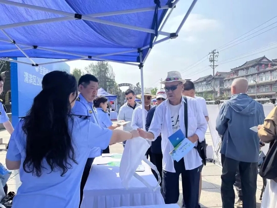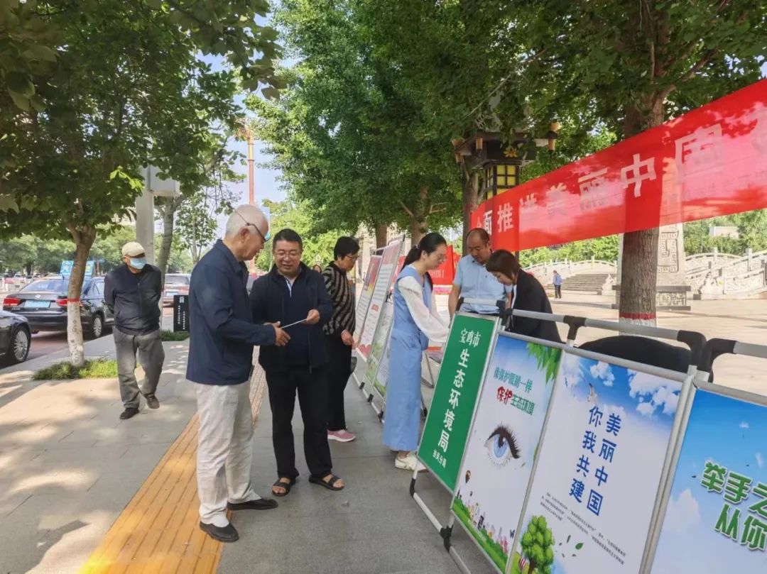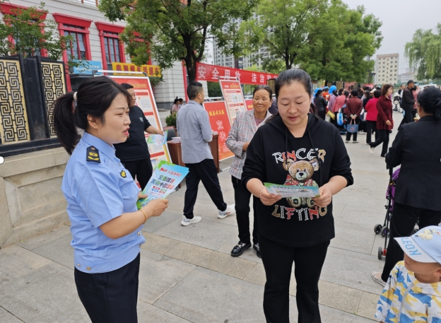 金台分局联合区住建局、区工信局、区林业局等部门在金台市民中心广场开展宣传活动。同时,联动各镇街在辖区社区、村开展宣传。