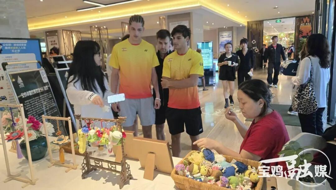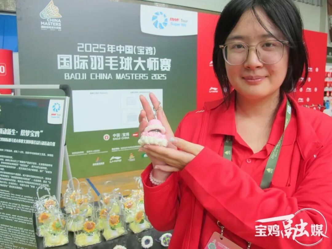 “哇——好漂亮的钥匙扣!好可爱的玩偶!原来是用废弃的羽毛球做的!”9月5日,在2025年中国(宝鸡)国际羽毛球大师赛运动员训练馆,一批用纯手工钩织的毛线工艺品受到运动员、裁判员和志愿者的青睐,大家纷纷选购这些工艺精巧的非遗文创品,作为他们参加宝鸡大师赛的一份很有意义的纪念品送给亲友。