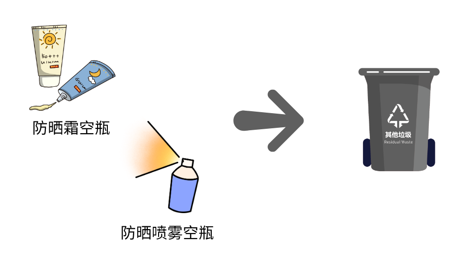 夏季温度高,日晒严重,因此出门必不可少的就是各种防晒措施。用完的防晒霜瓶和防晒喷雾都是其他垃圾。