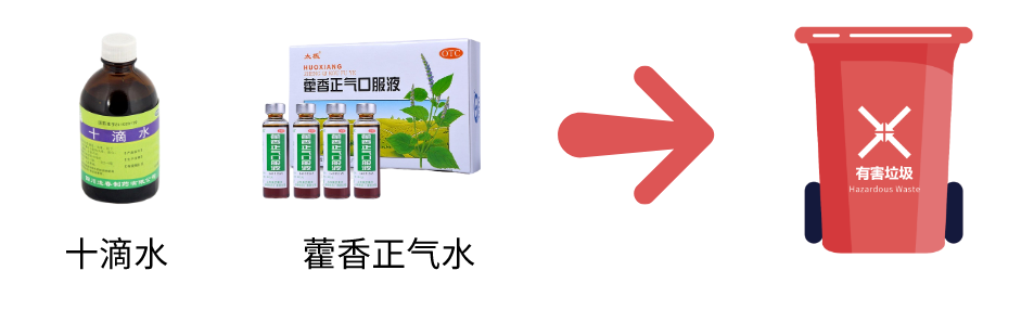 夏季防中暑神器“藿香正气水”“十滴水”等药物内含有化学成分,喝完后瓶子不能随意乱扔,应投入有害垃圾收集容器内,否则处理不当会污染环境。