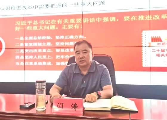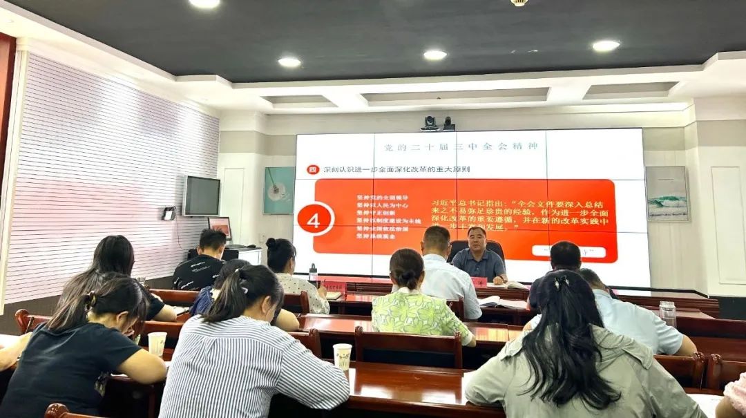按照市局党组工作安排,9月5日,市局党组成员、副局长闫涛为分管科室及环保宣教信息中心宣讲党的二十届三中全会精神,引导党员干部把思想和行动统一到全会精神上来,以钉钉子精神抓改革谋落实,为履行好新时代使命任务汇聚实干热情。
