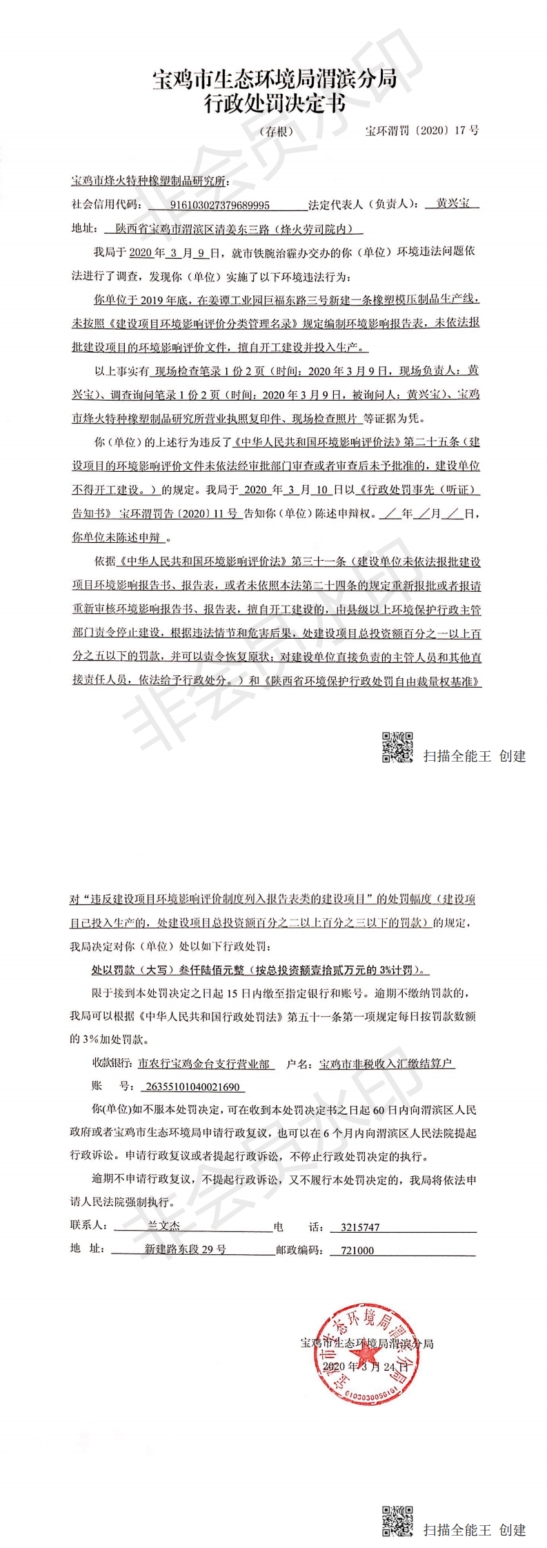 十大网赌平台排行榜渭滨分局行政处罚决定书(宝环渭罚〔2020〕17号)