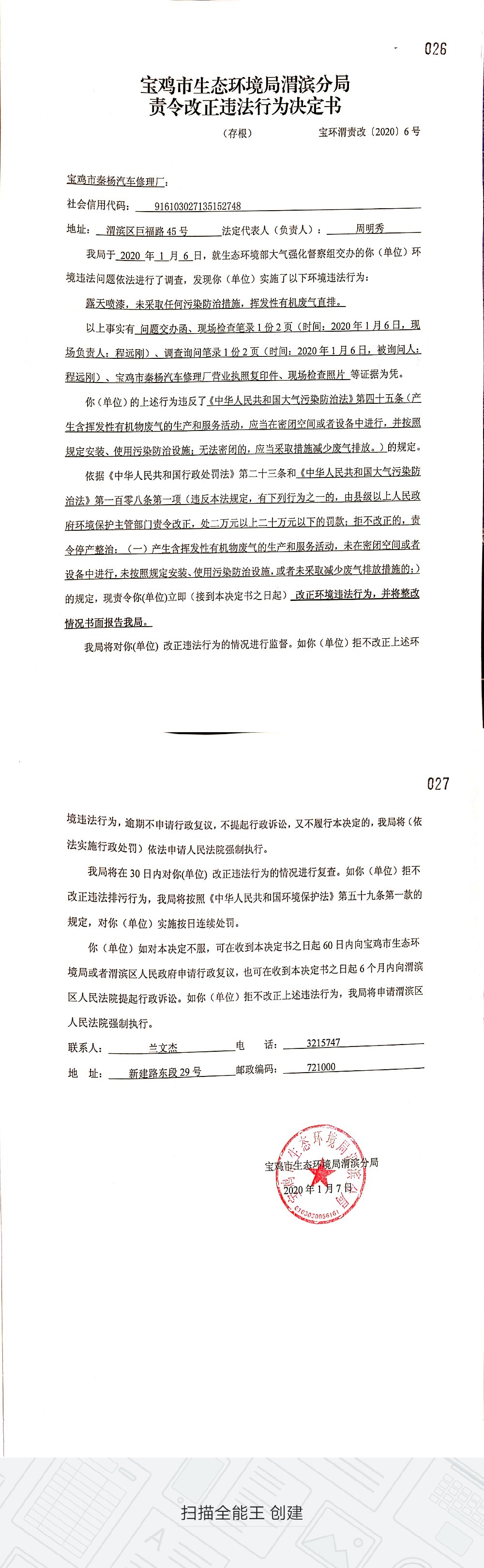 网赌平台渭滨分局责令改正违法行为决定书(宝环渭责改〔2020〕6号)