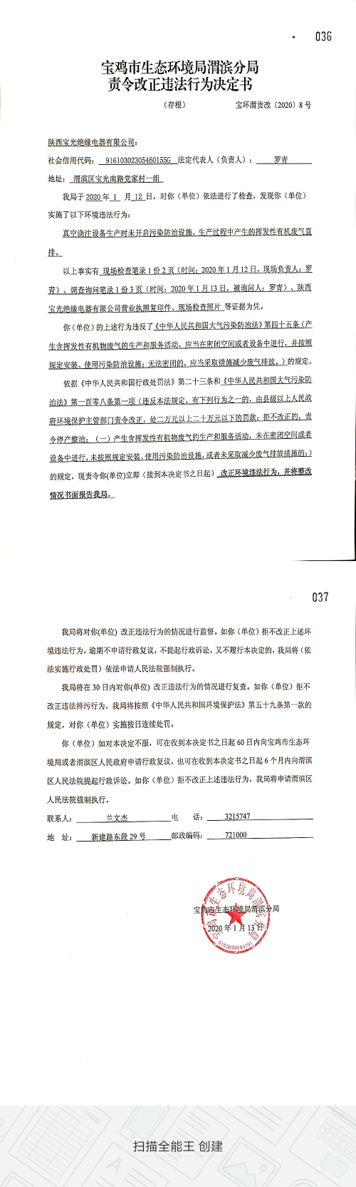网赌平台渭滨分局责令改正违法行为决定书(宝环渭责改〔2020〕8号)