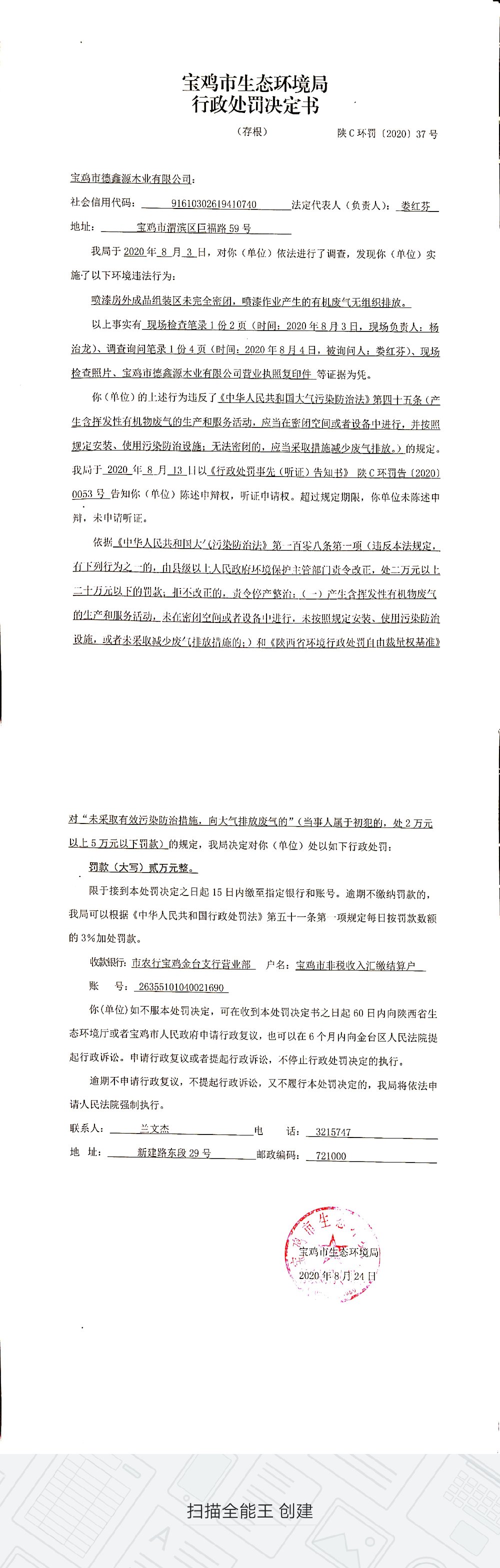 十大网赌平台排行榜行政处罚决定书(陕C环罚〔2020〕37号)