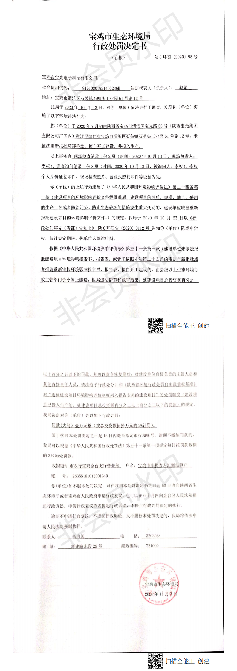 网赌平台行政处罚决定书(陕C环罚〔2020〕95号)