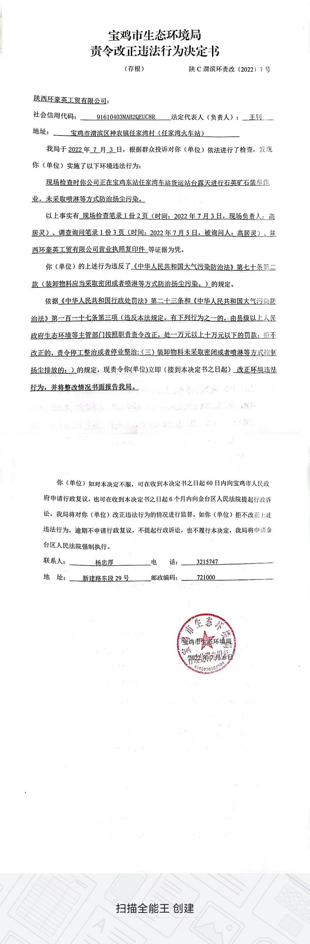 网赌平台责令改正违法行为决定书(陕C渭滨环责改〔2022〕7号)