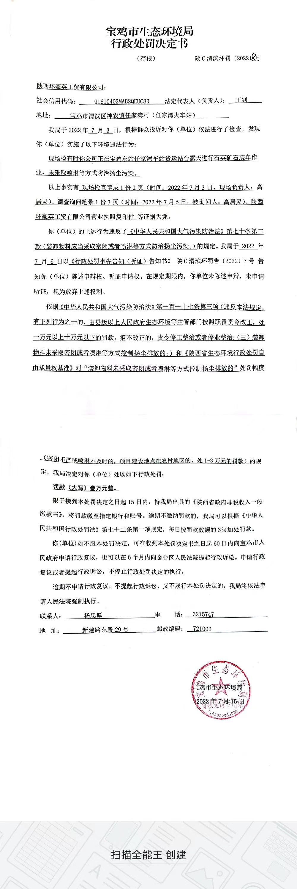 网赌平台行政处罚决定书(陕C渭滨环罚〔2022〕8号)
