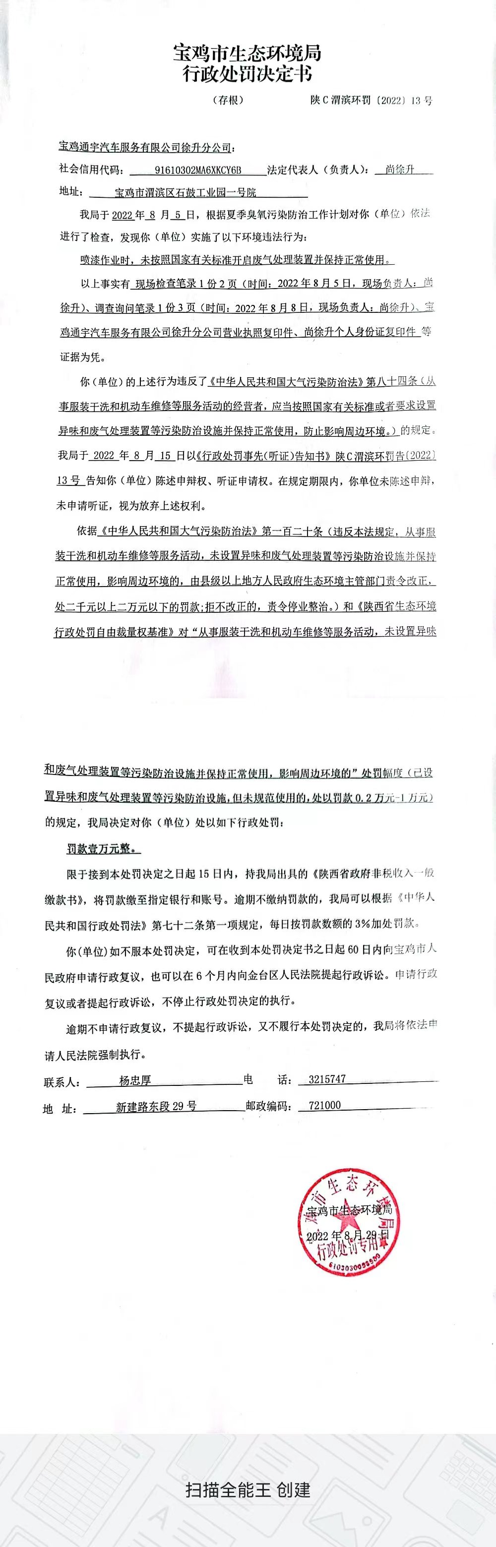 网赌平台行政处罚决定书(陕C渭滨环罚〔2022〕13号)