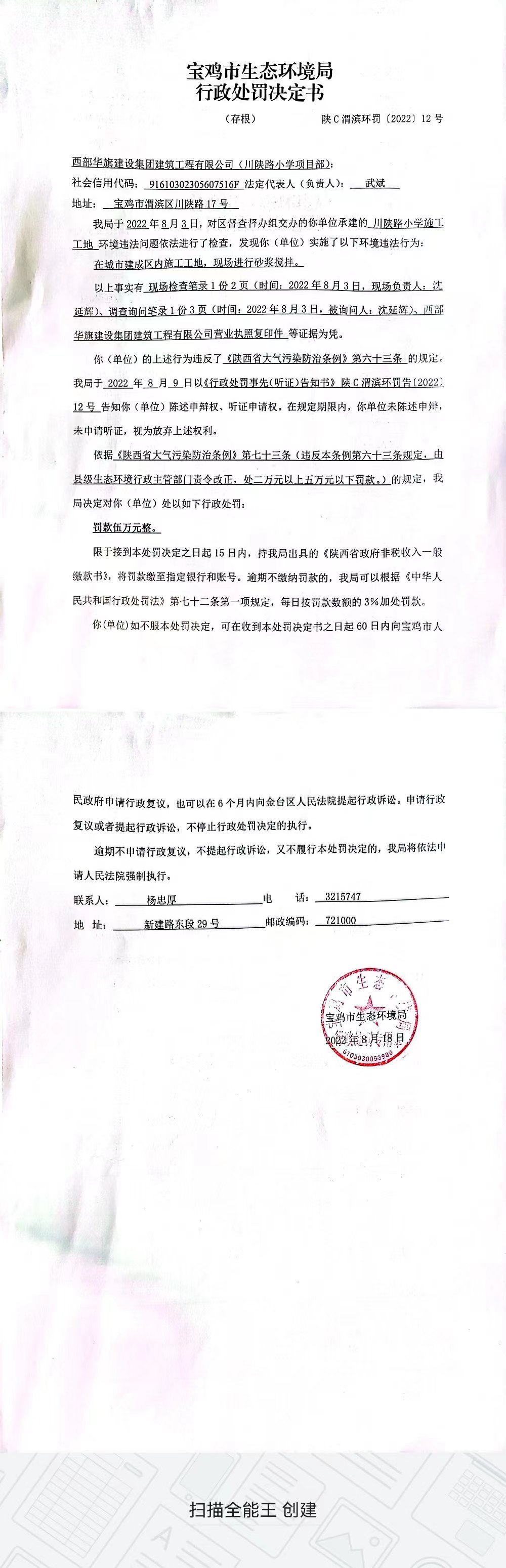 网赌平台行政处罚决定书(陕C渭滨环罚〔2022〕12号)