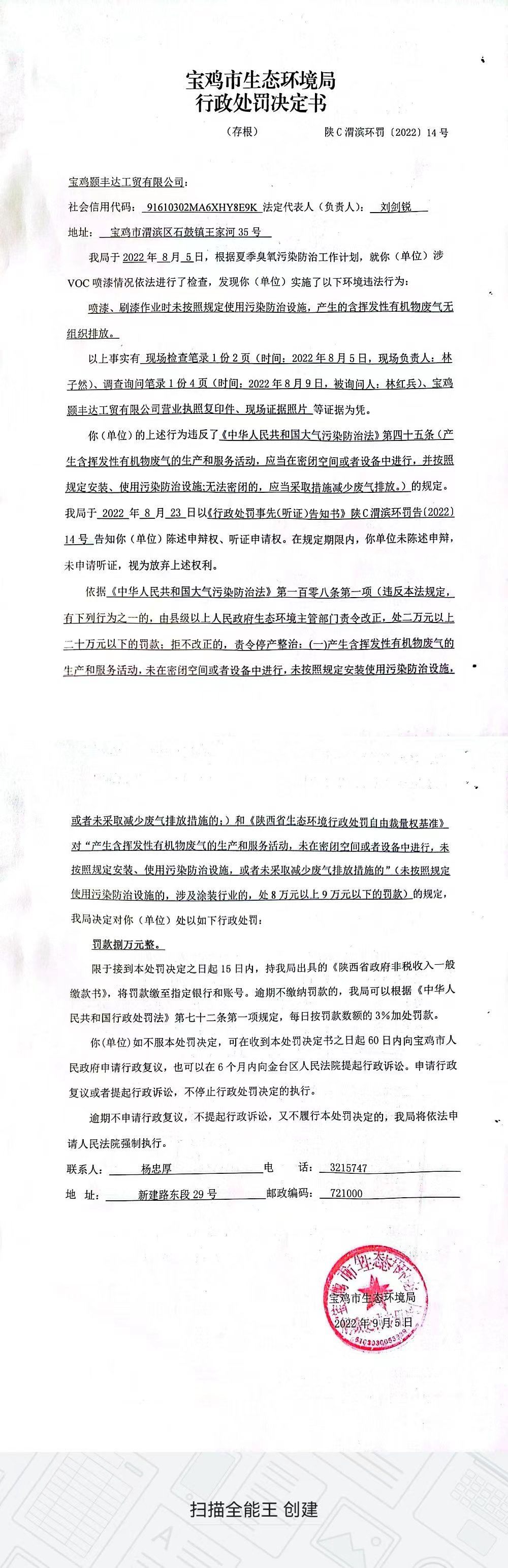 网赌平台行政处罚决定书(陕C渭滨环罚〔2022〕14号)
