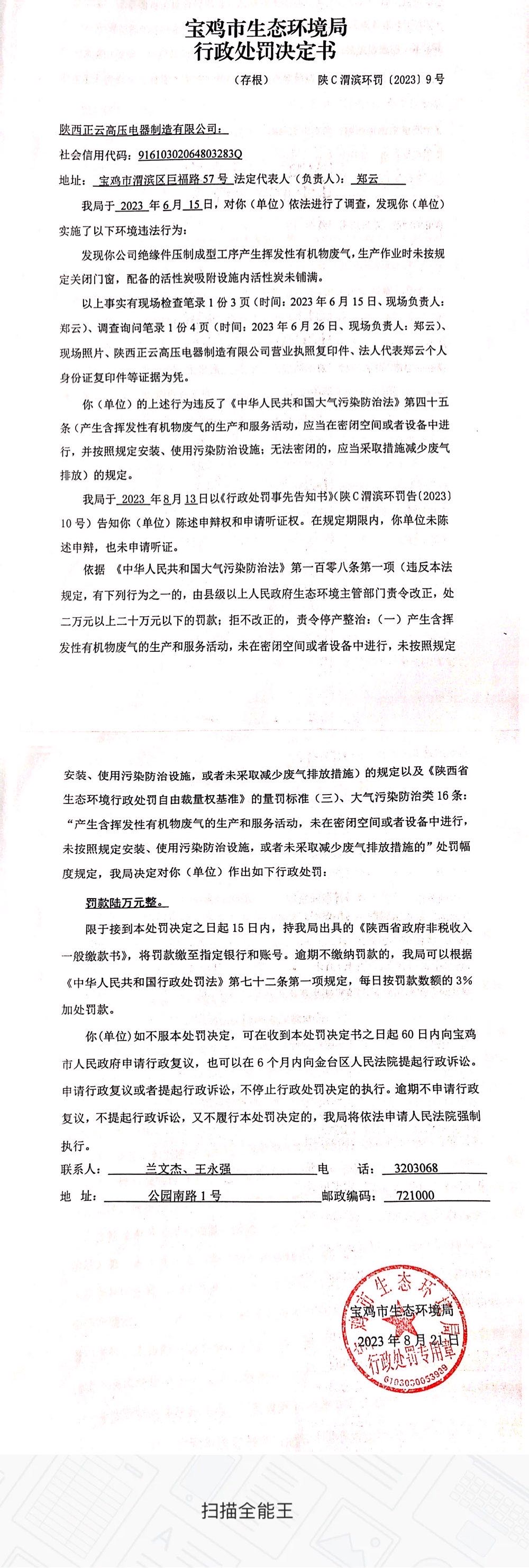 网赌平台行政处罚决定书(陕C渭滨环罚〔2023〕9号)