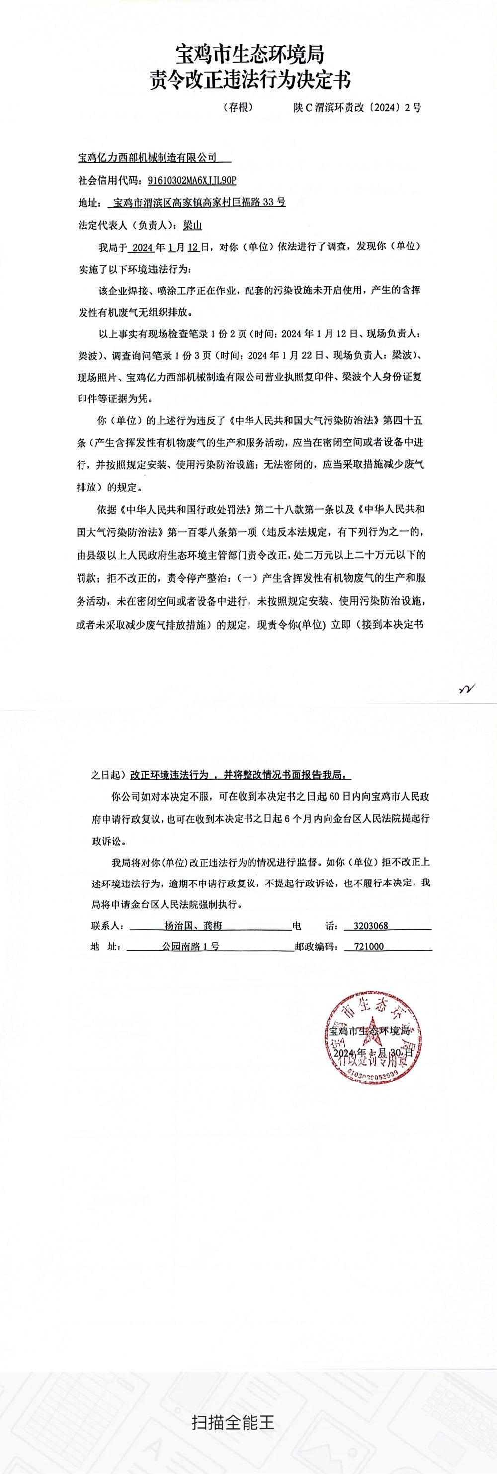 网赌平台责令改正违法行为决定书(陕C渭滨环责改〔2024〕2号)