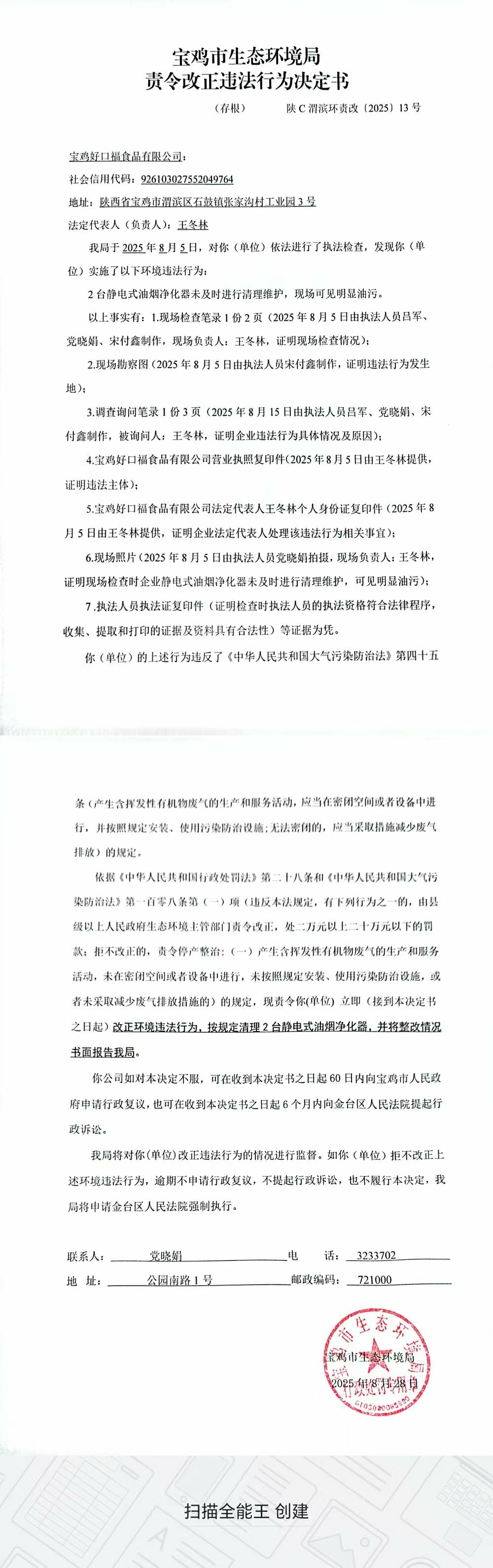 十大网赌平台排行榜责令改正违法行为决定书(陕C渭滨环责改〔2025〕13号)