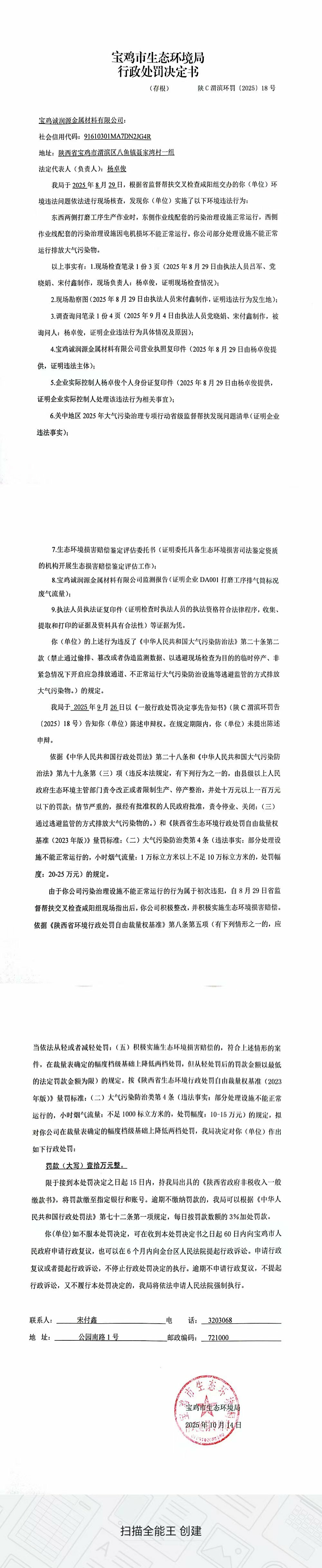 网赌平台行政处罚决定书(陕C渭滨环罚〔2025〕18号)