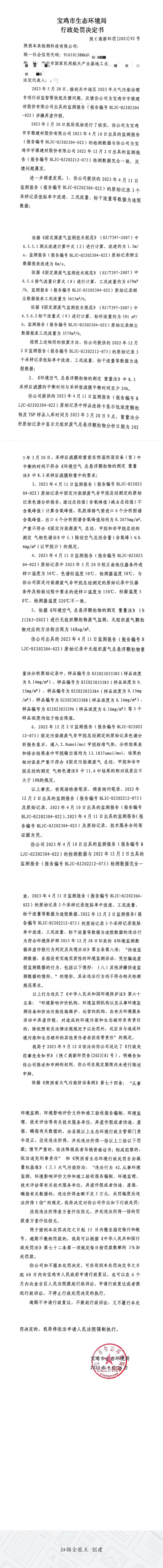 十大网赌平台排行榜行政处罚决定书(陕C高新环罚[2023]92号)