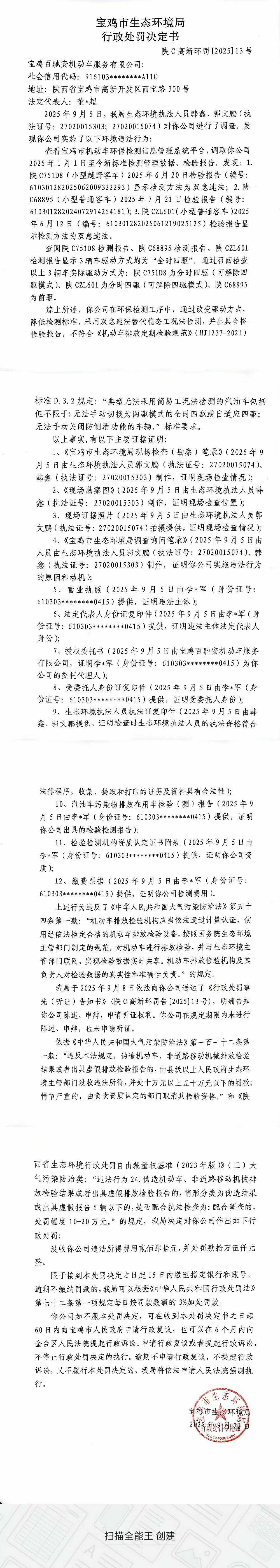 十大网赌平台排行榜行政处罚决定书(陕C高新环罚[2025]13号)