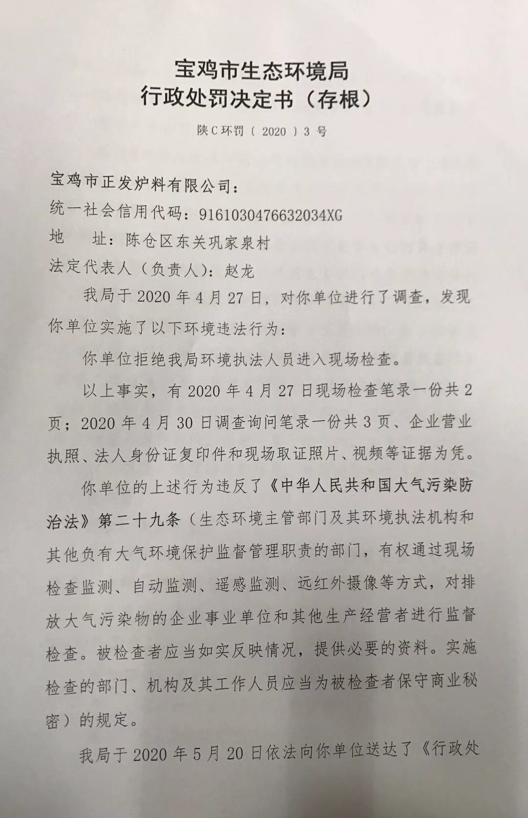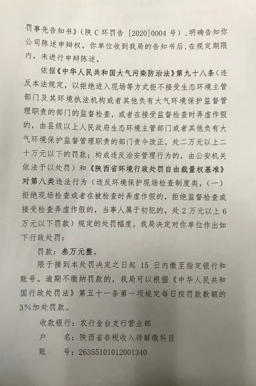 网赌平台行政处罚决定书(陕C环罚〔 2020 〕3 号)