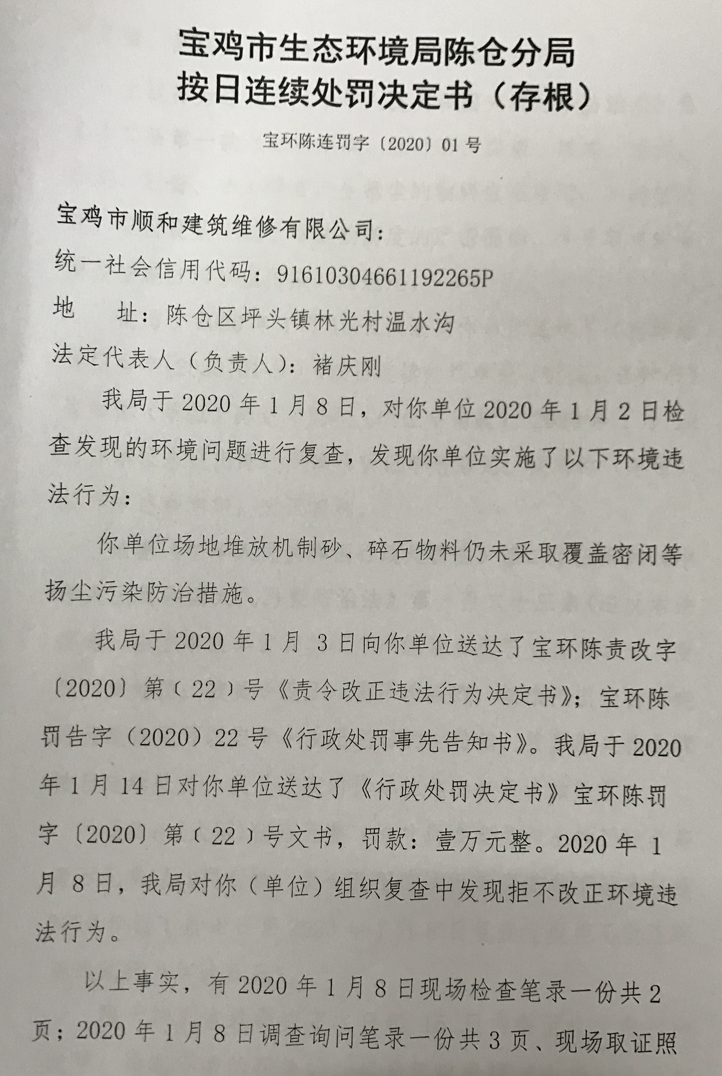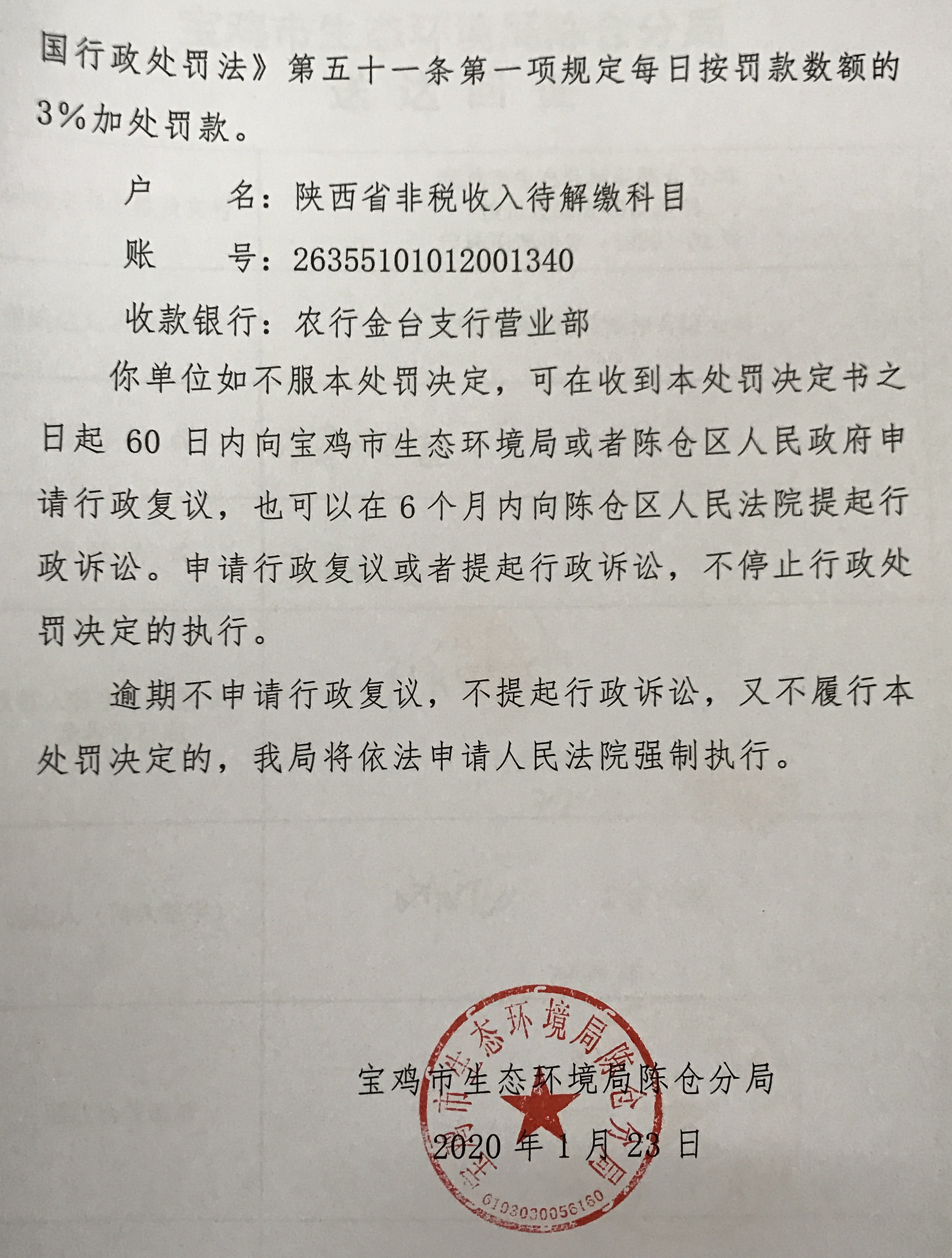 网赌平台陈仓分局处罚决定书(存根)(宝环陈罚字〔2020〕01号)