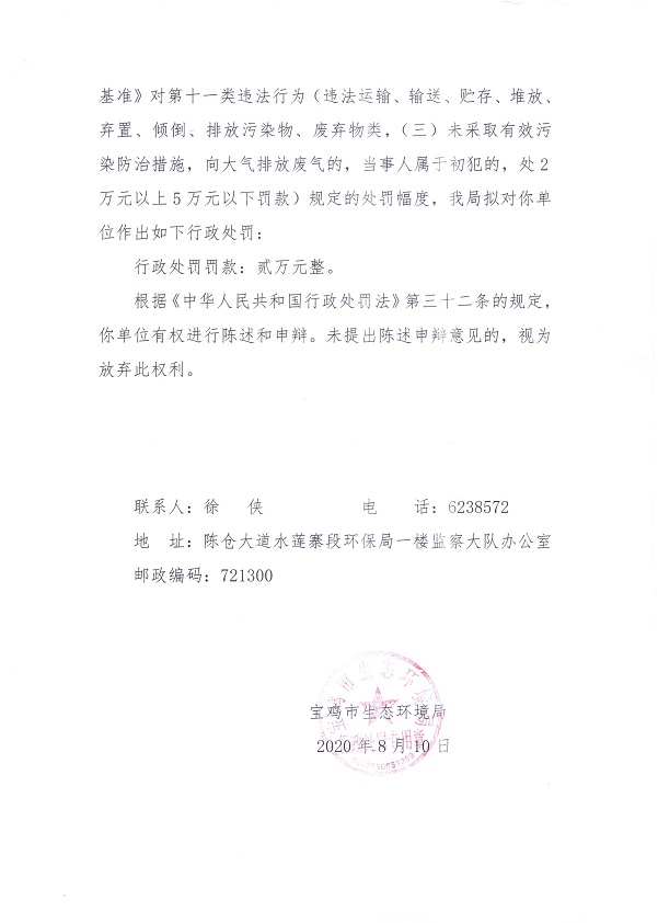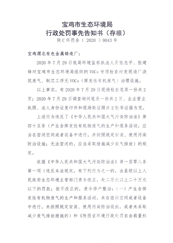 网赌平台行政处罚事先告知书(存根)陕C环罚告(2020)0043号
