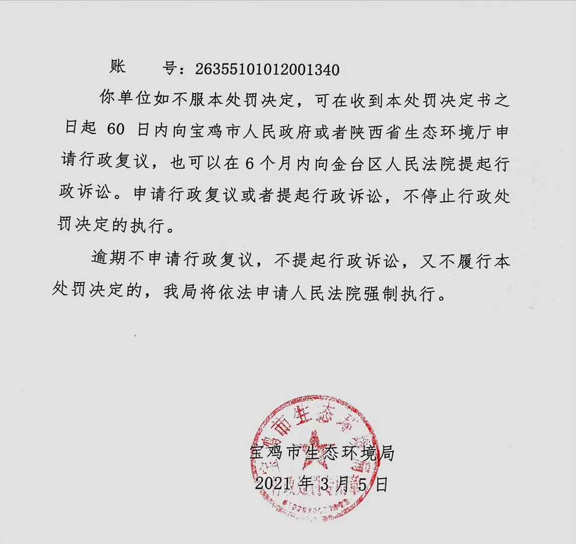 宝鸡环境污染监管信息公开