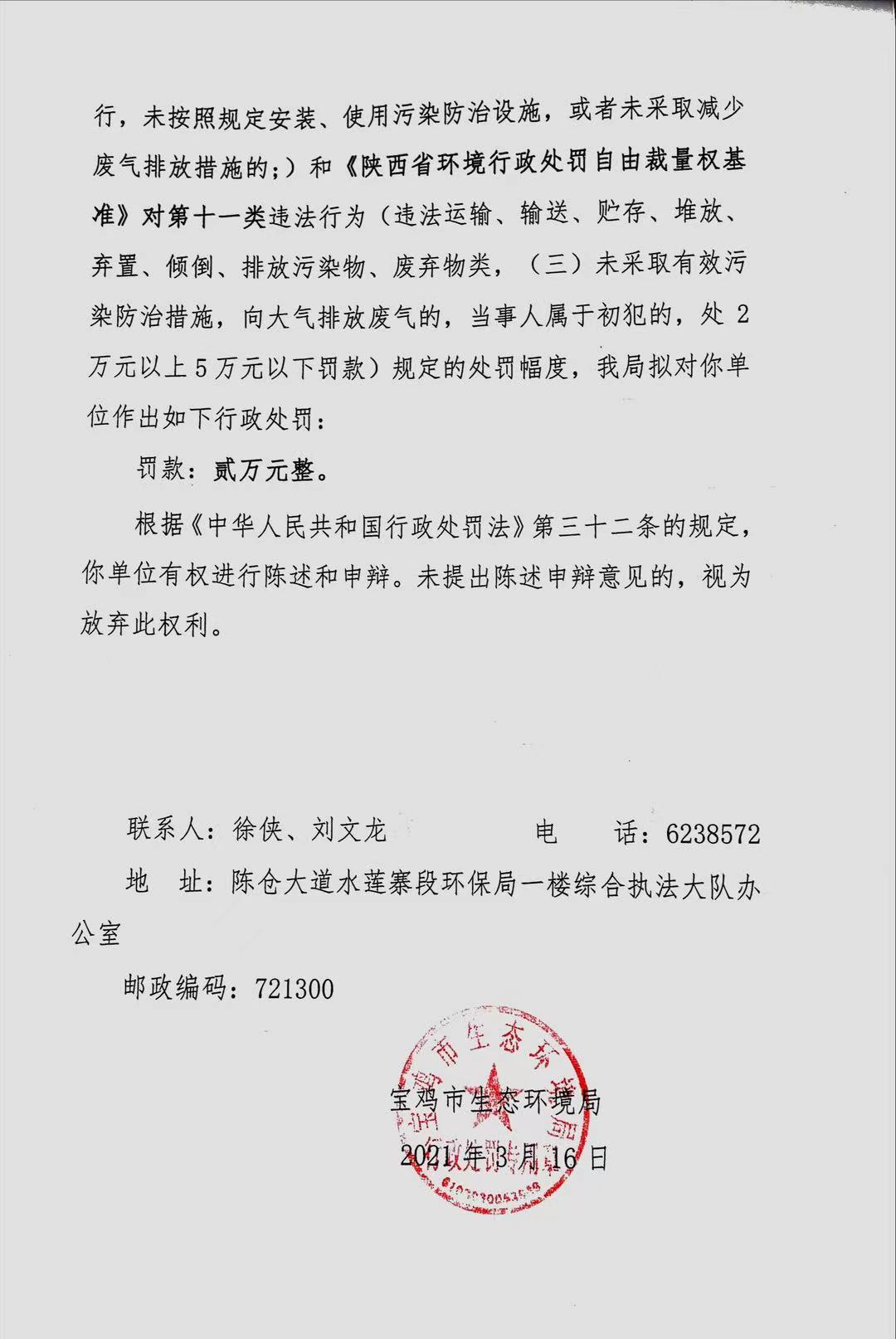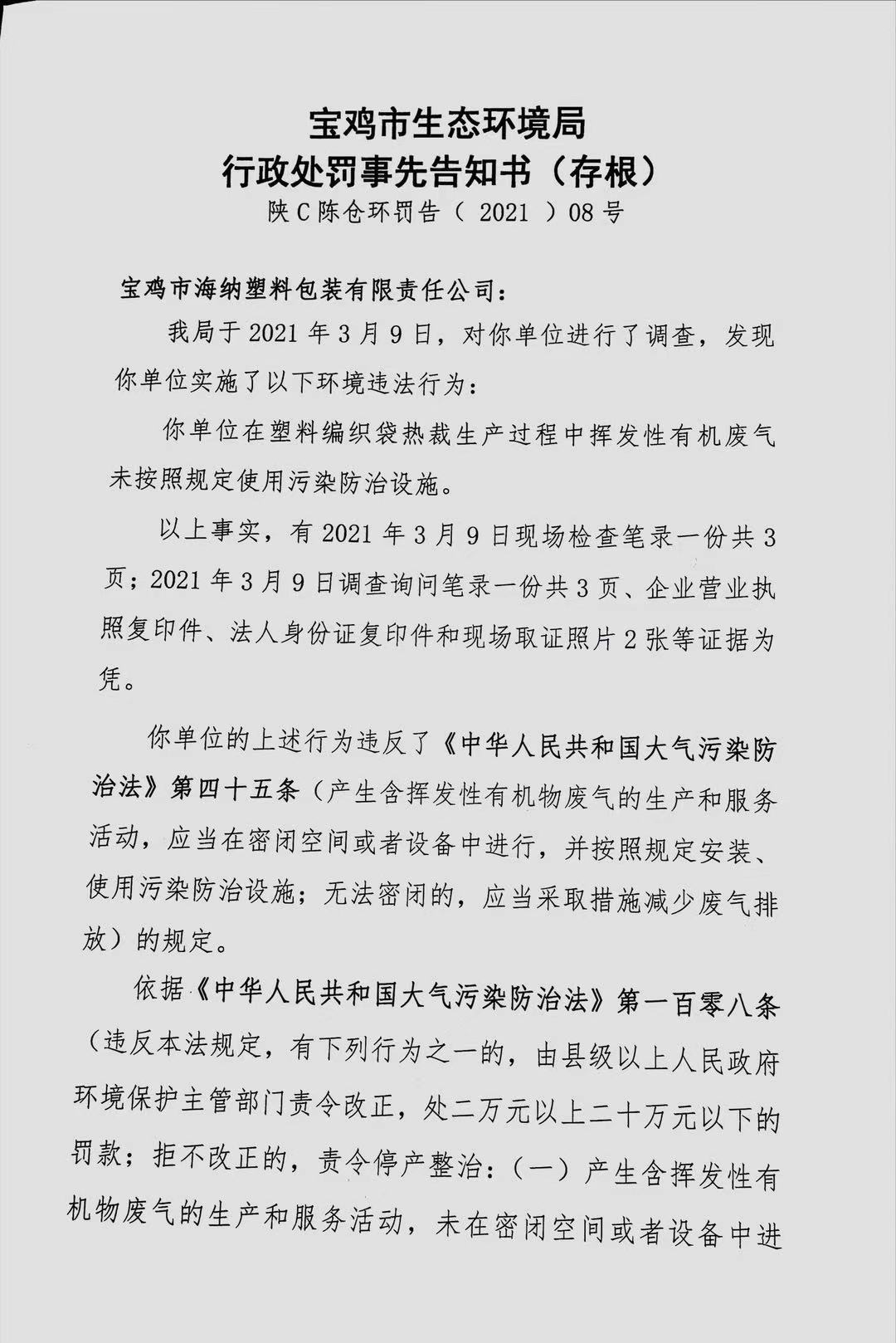 十大网赌平台排行榜 行政处罚事先告知书(存根) 陕C陈仓环罚告( 2021 )08号