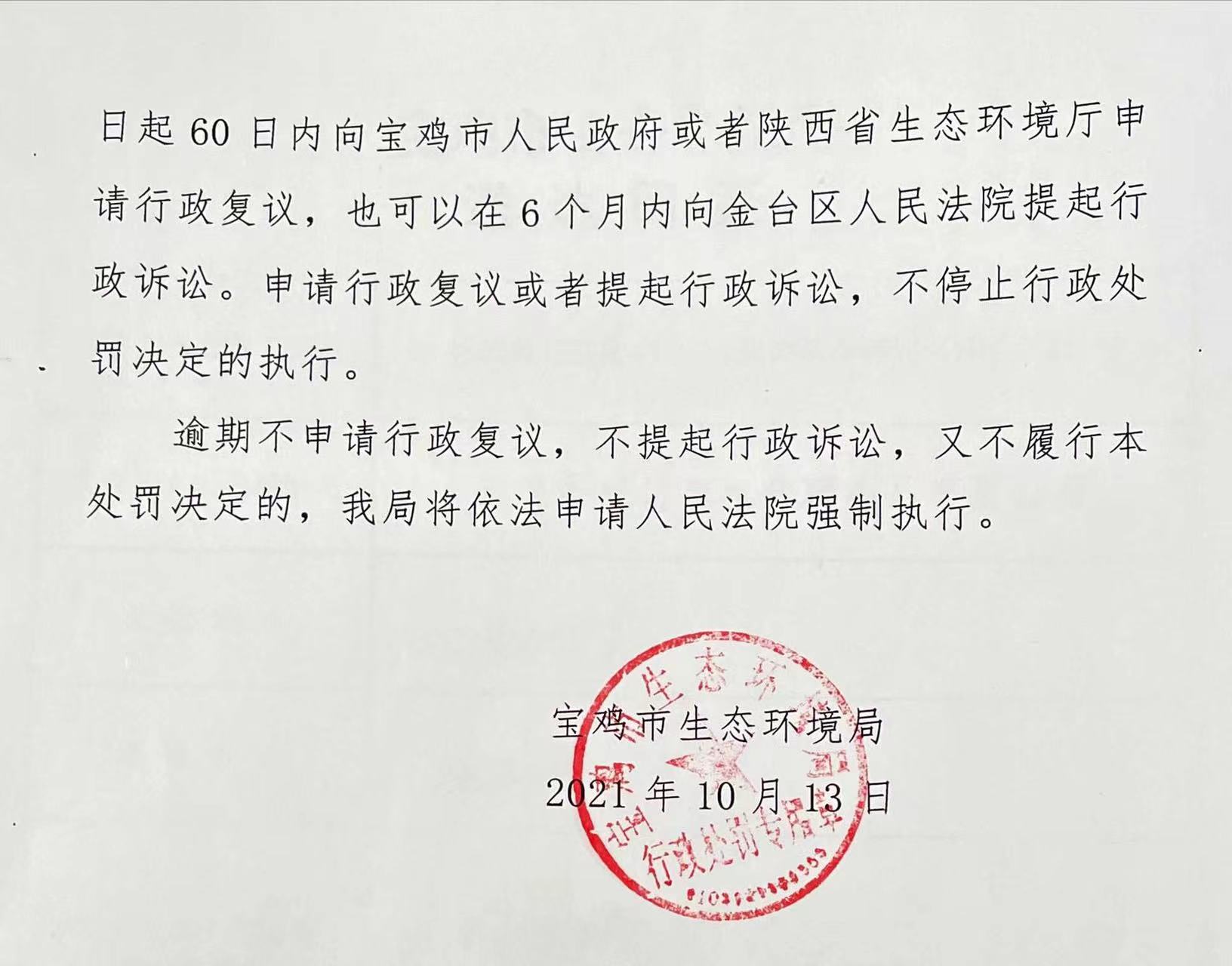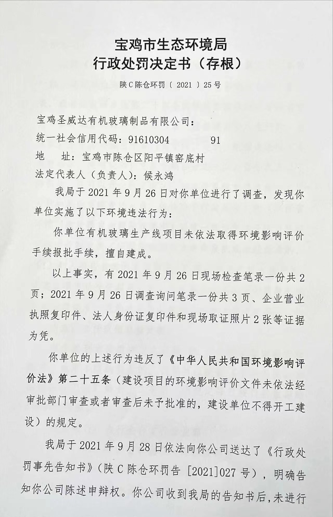 十大网赌平台排行榜 行政处罚决定书(存根) 陕C陈仓环罚〔 2021 〕25号