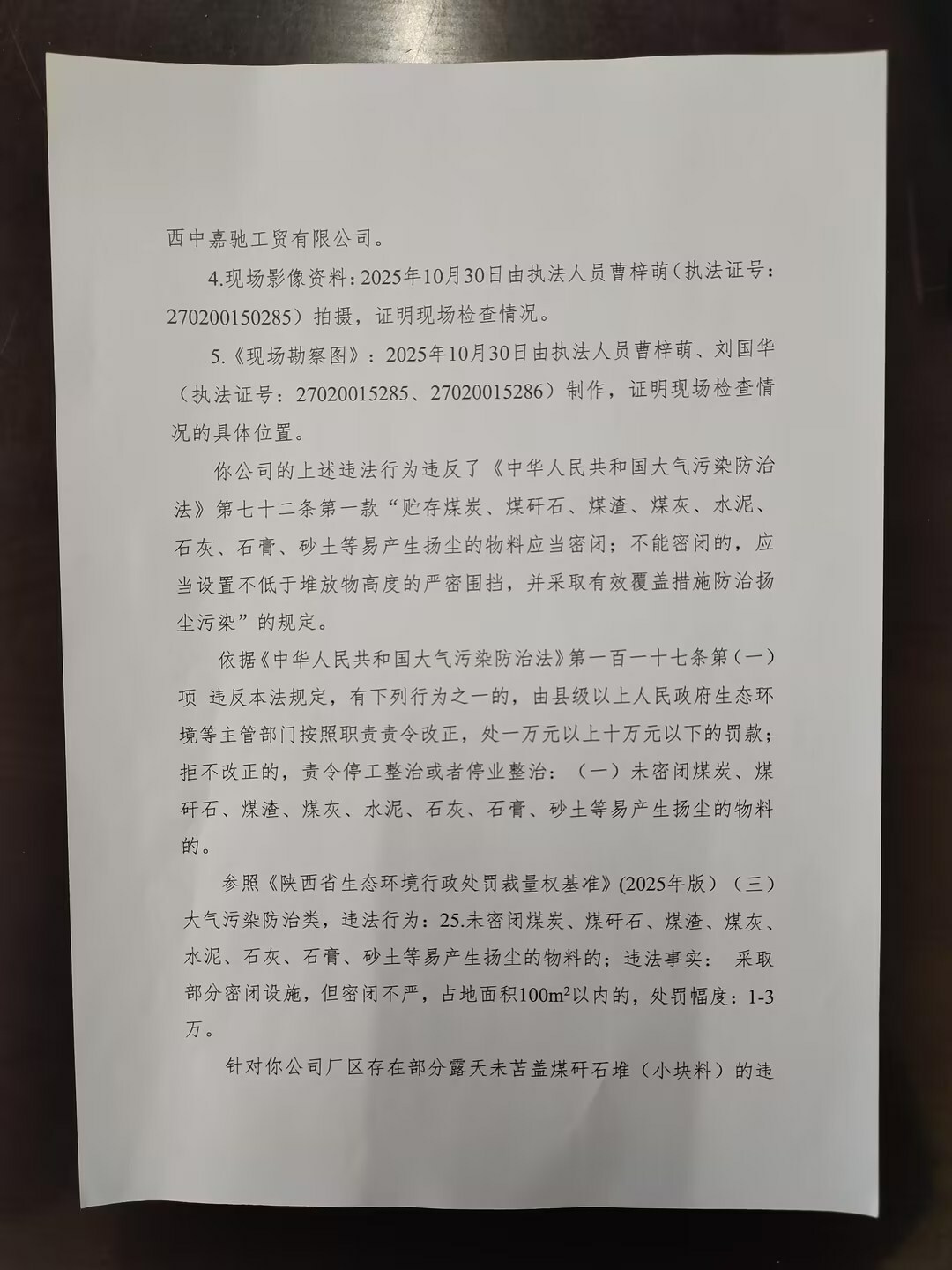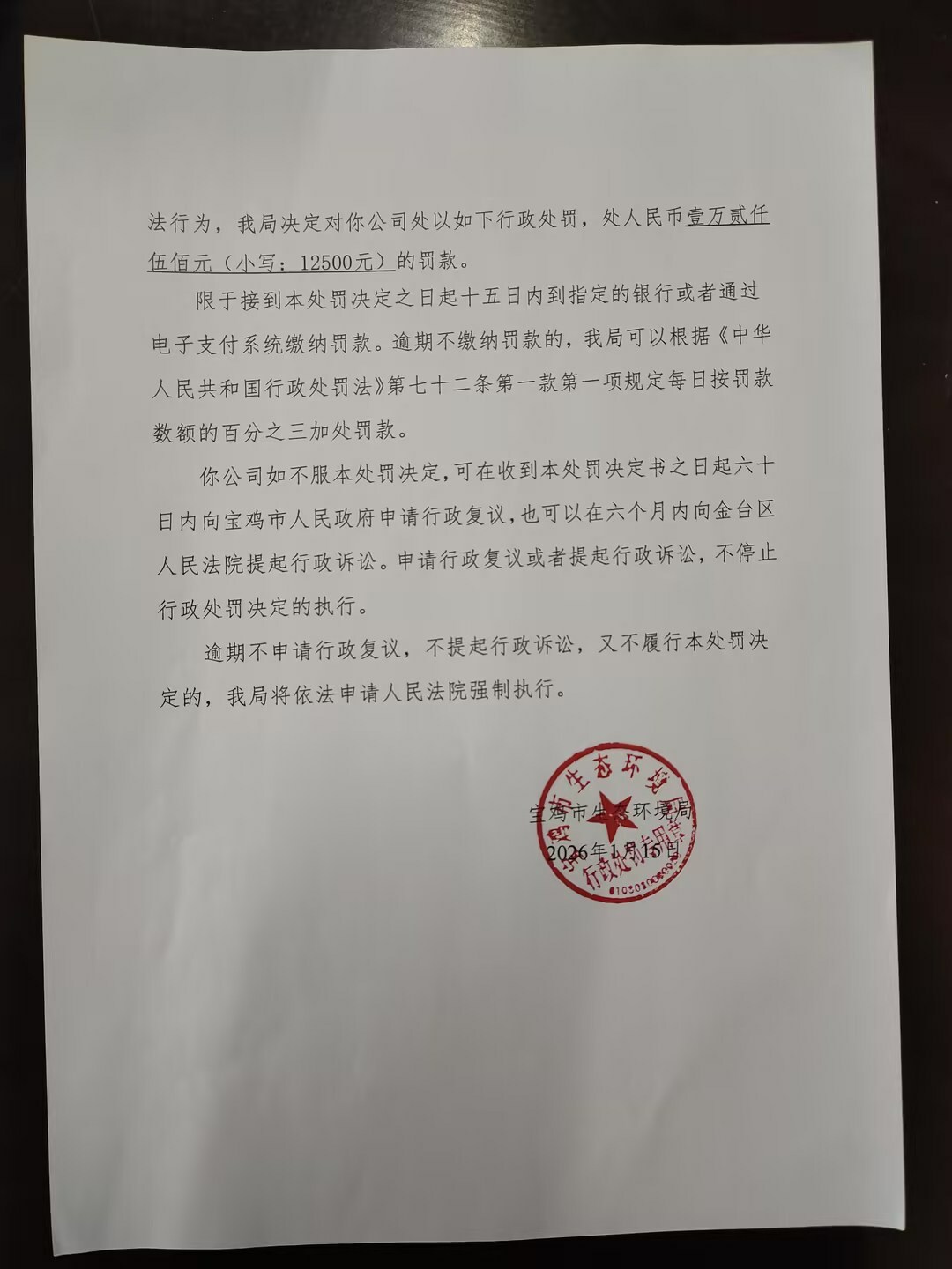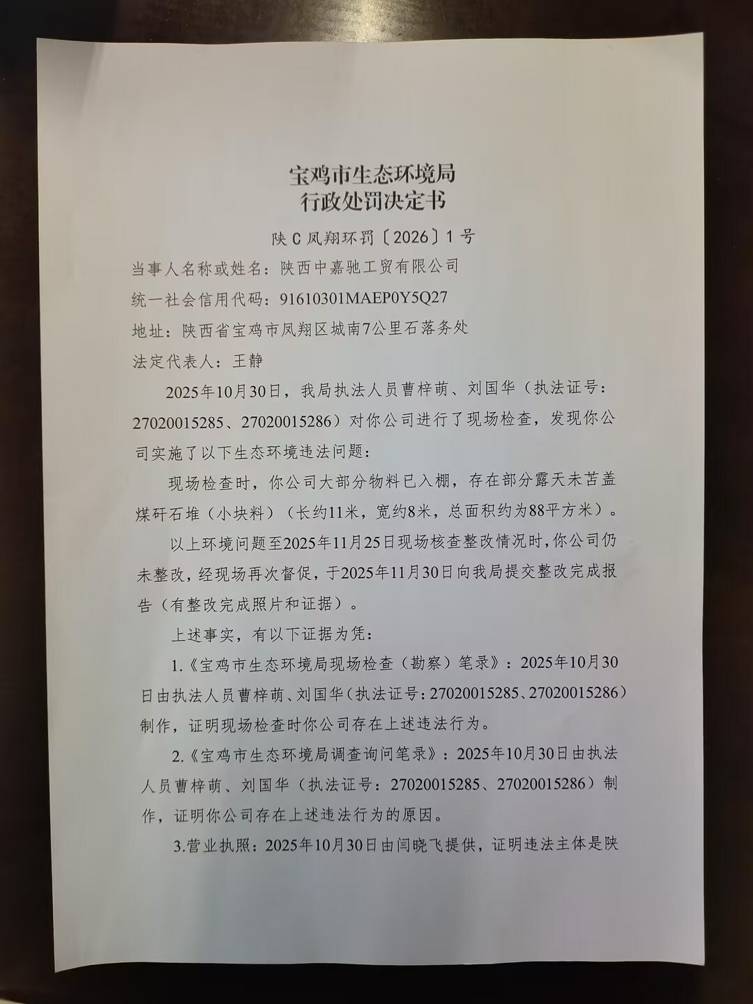 十大网赌平台排行榜行政处罚决定书 陕C凤翔环罚〔2026〕1号