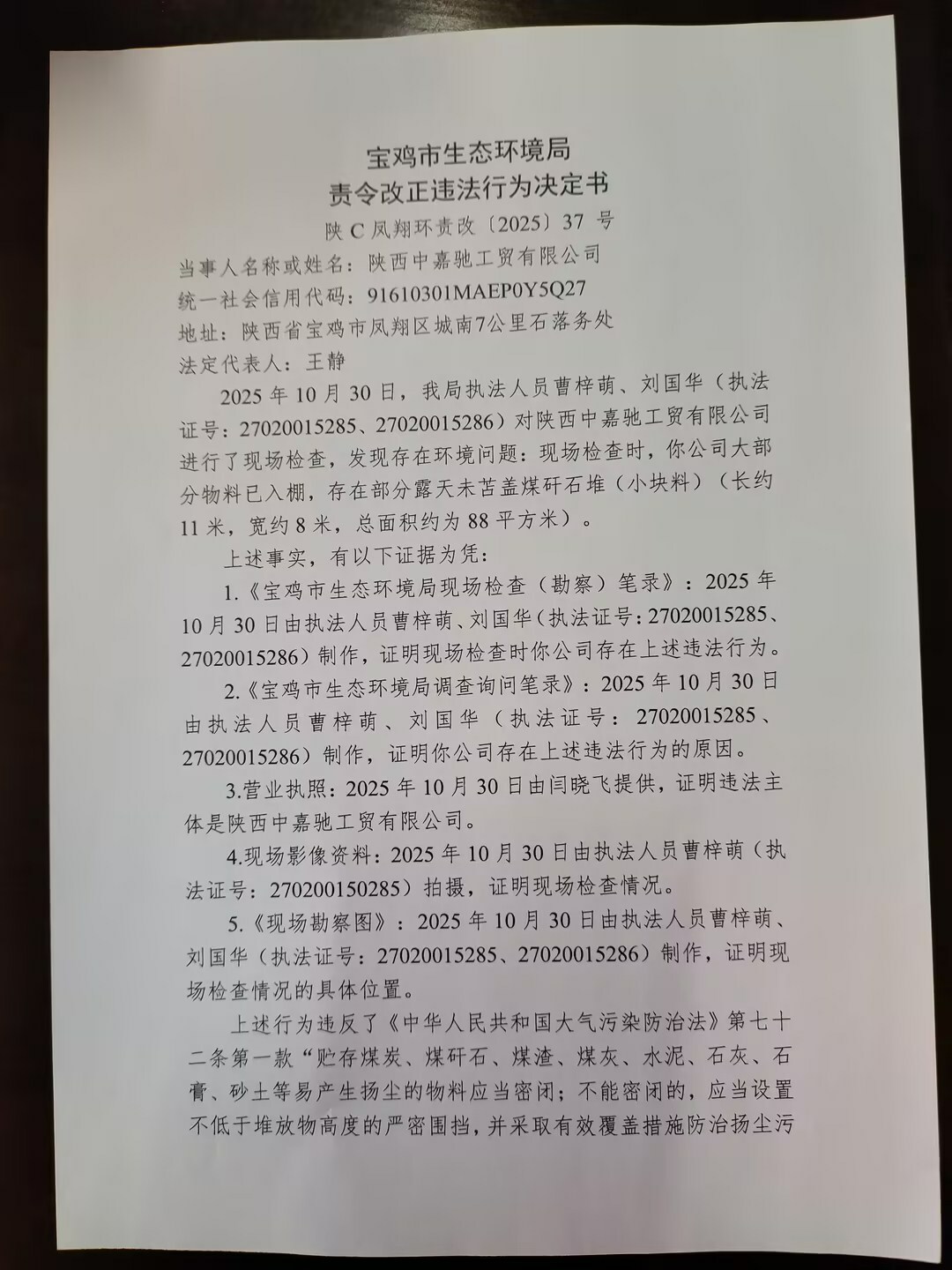 网赌平台责令改正违法行为决定书 陕C凤翔环责改〔2025〕37 号