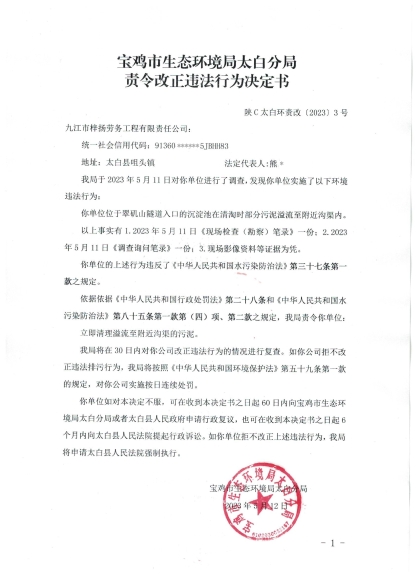 网赌平台太白分局责令改正违法行为决定书陕C太白环责改〔2023〕3号