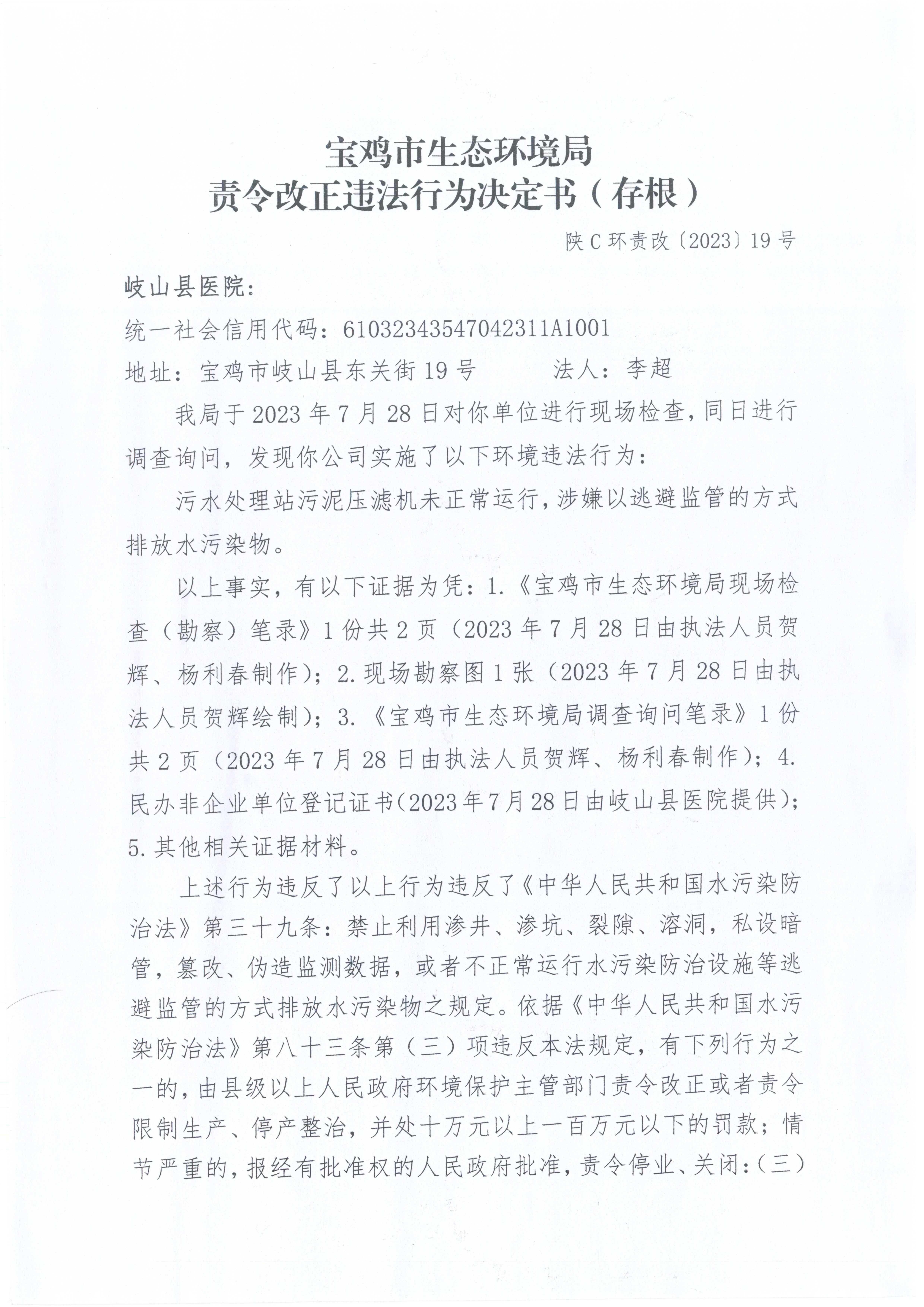 网赌平台责令改正违法行为决定书 陕C环责改[2023)19号
