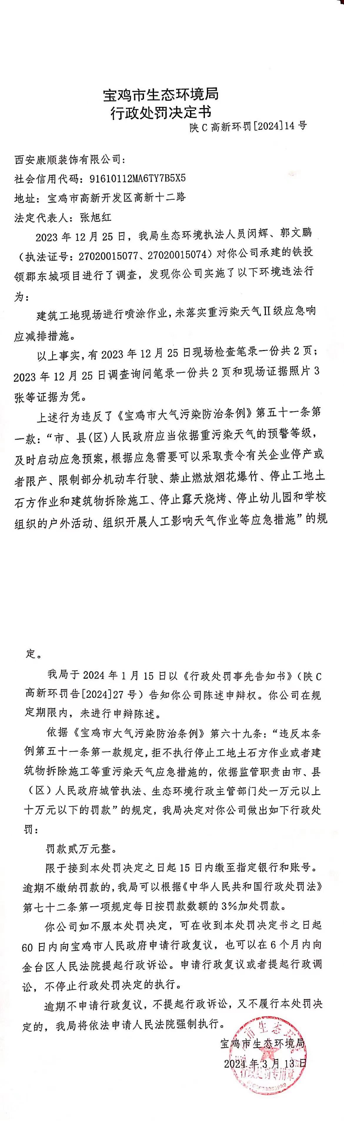 陕c高新环罚[2024]14号