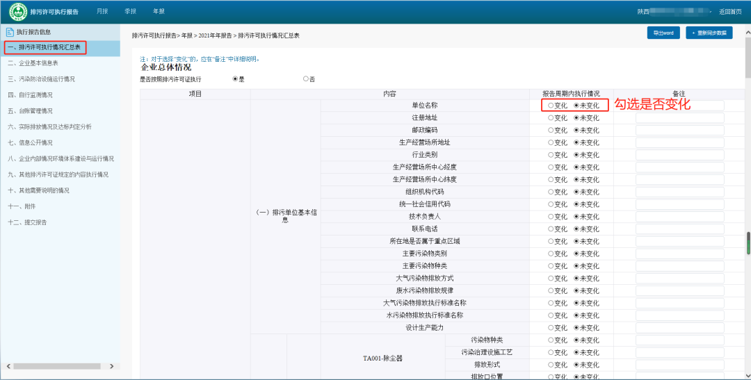 注意:对于排污单位信息有变化和违证排污等情形,应分析与排污许可证内容的差异,并说明原因。