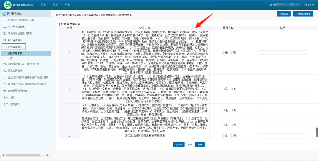 4)环境管理台账执行情况,