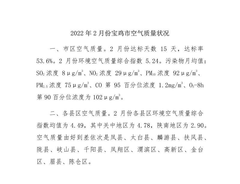 2022年2月份十大网赌平台排行榜空气质量状况