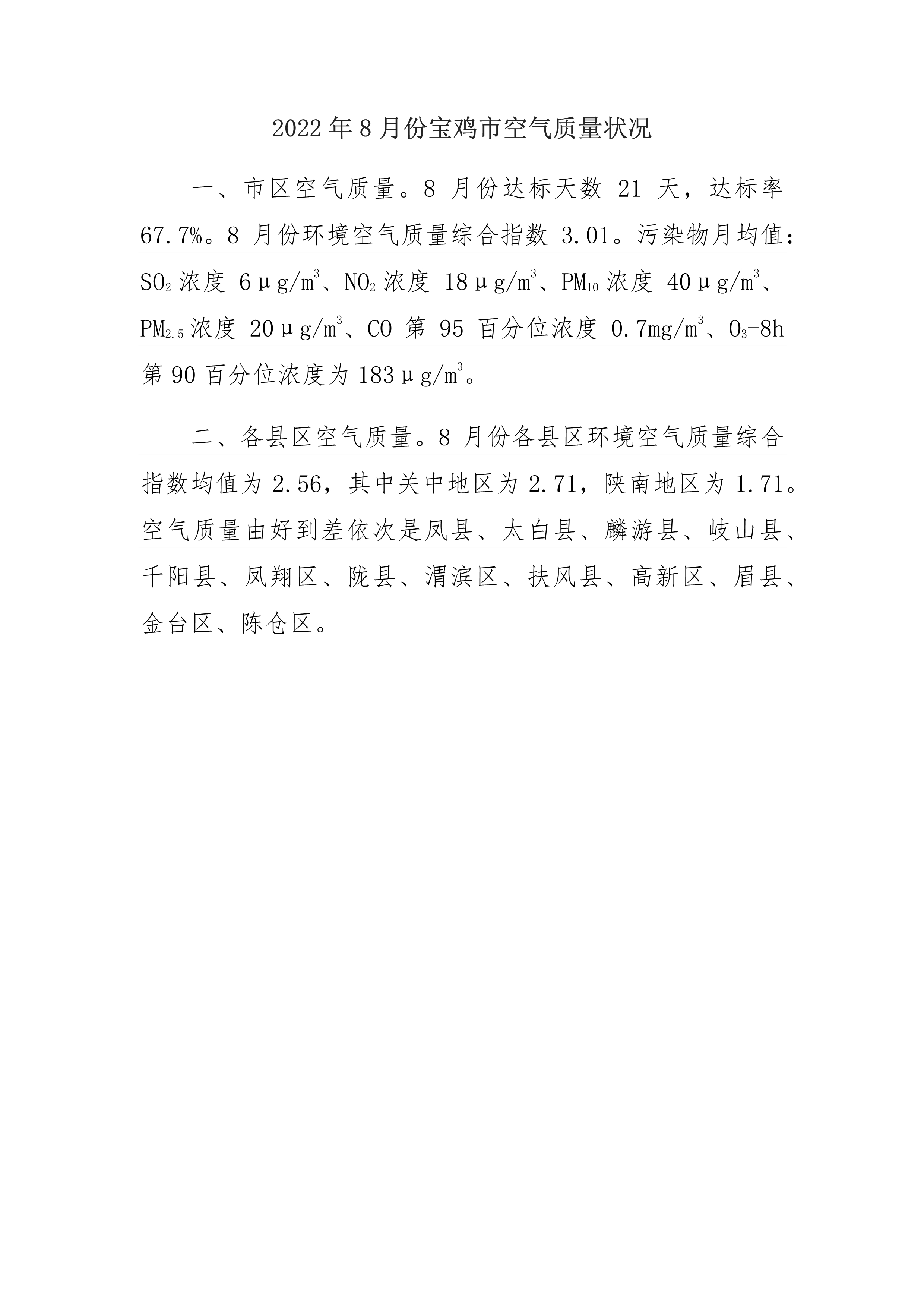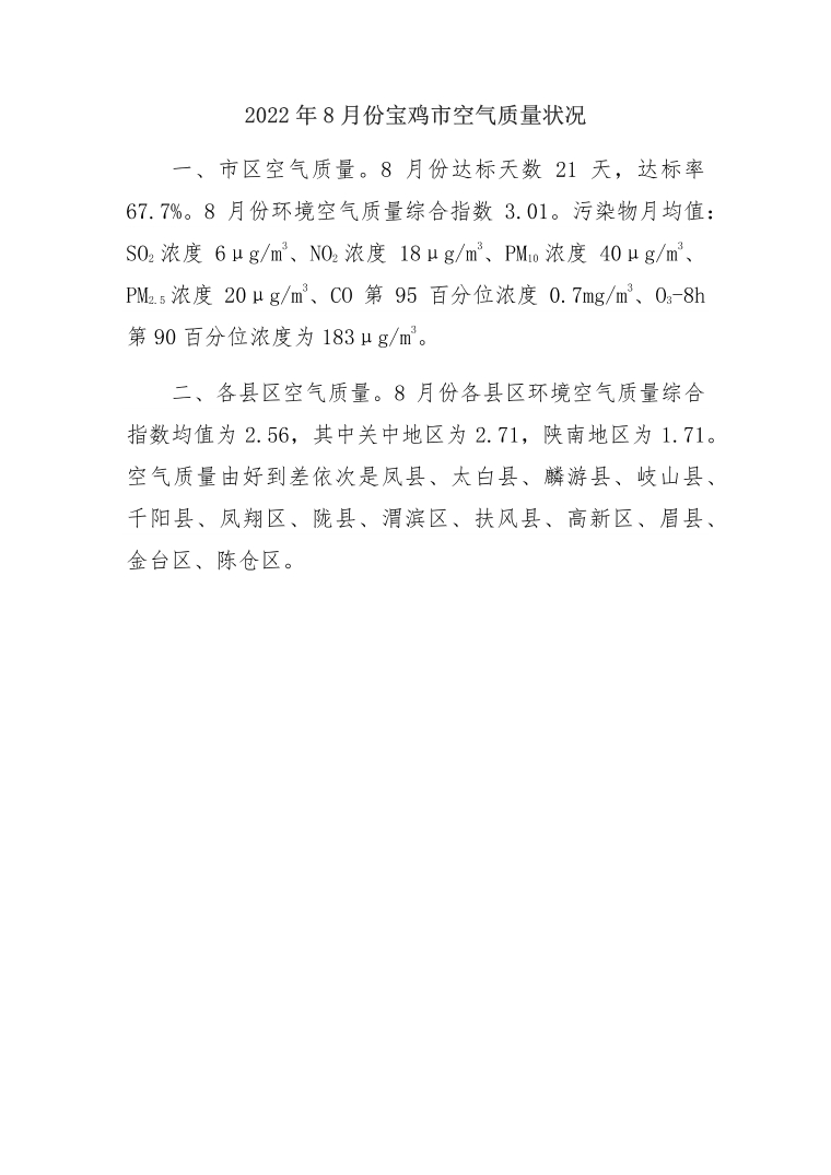 2022年8月份十大网赌平台排行榜空气质量状况