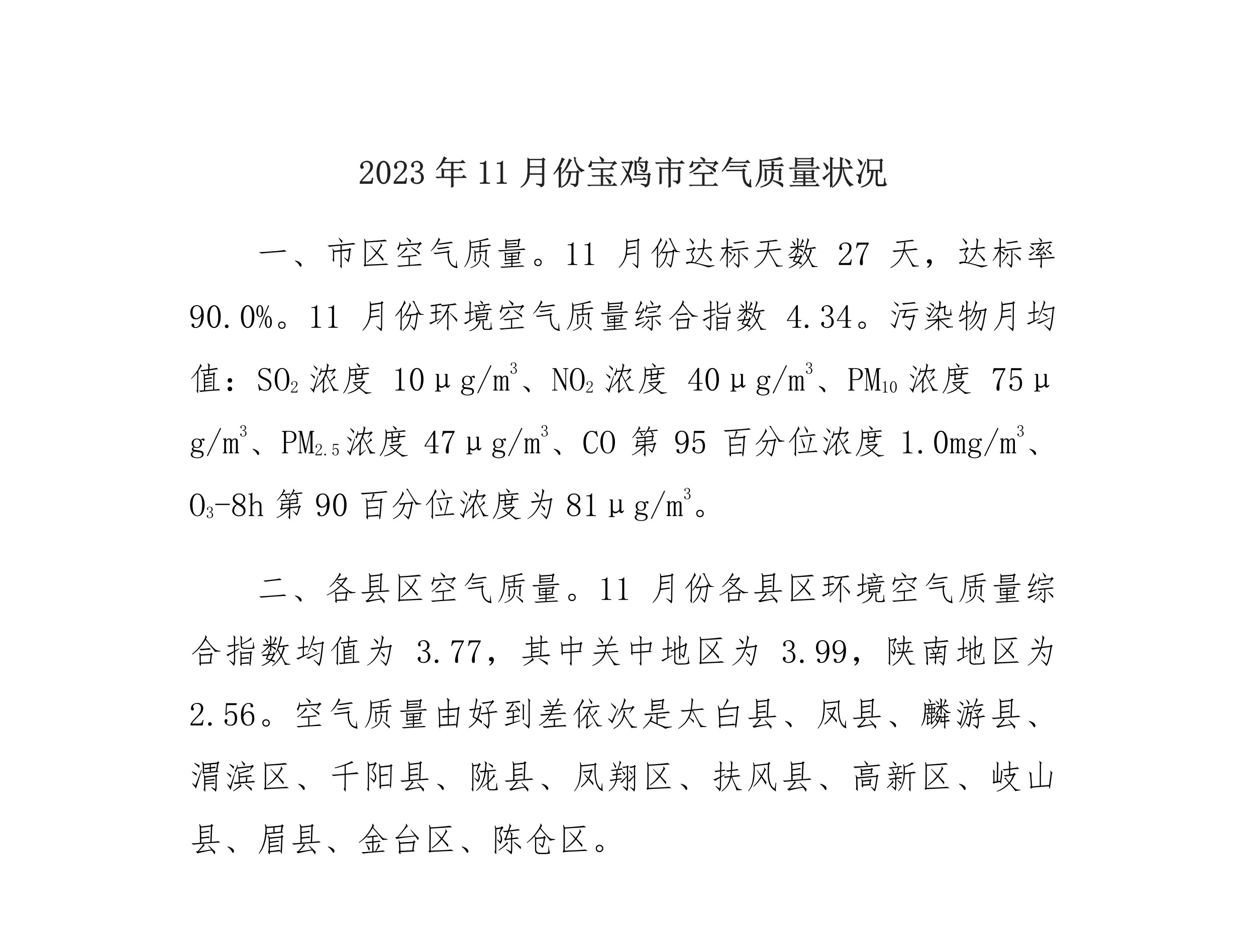 2023年11月份十大网赌平台排行榜空气质量状况