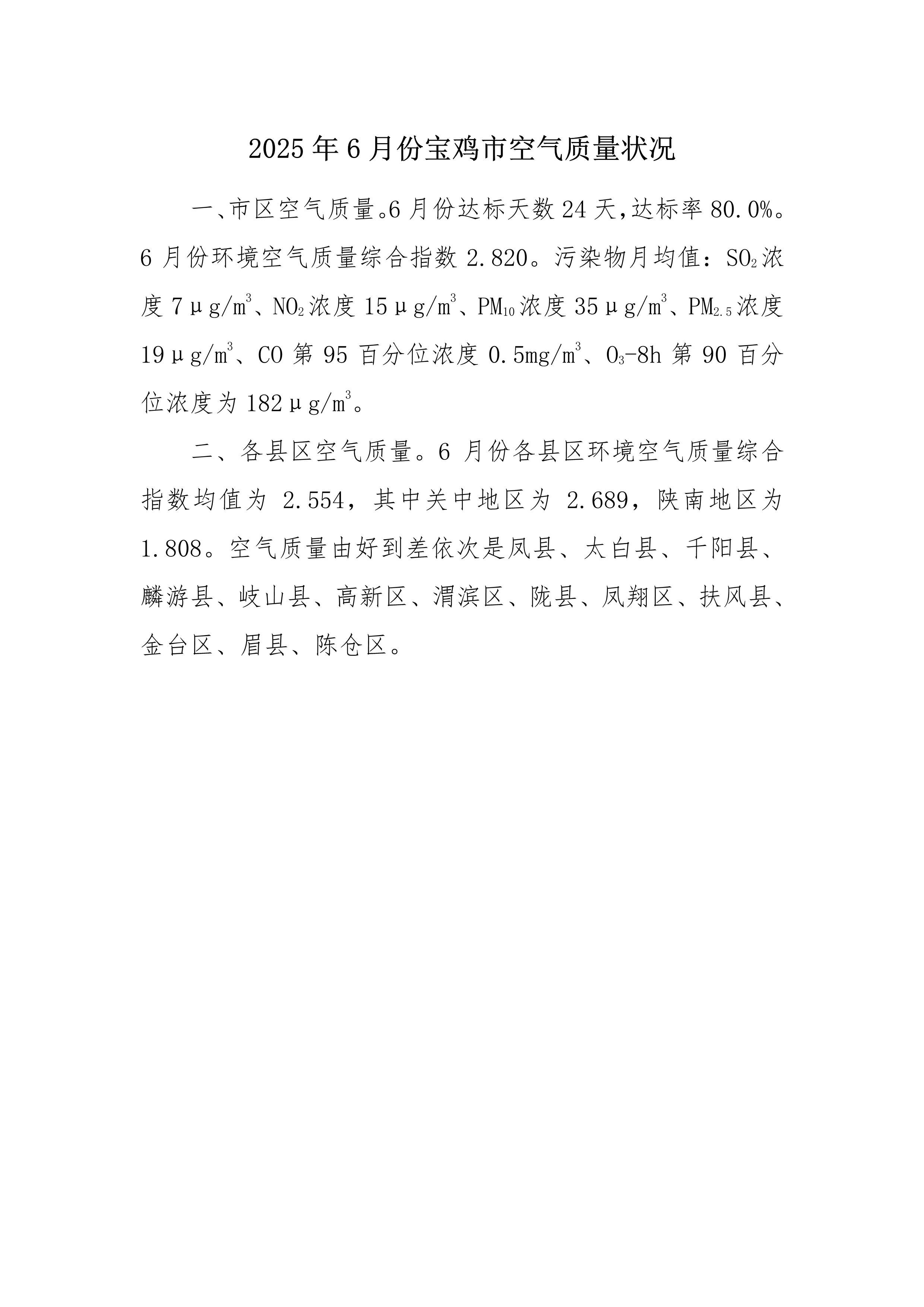 2025年6月份网赌平台空气质量状况
