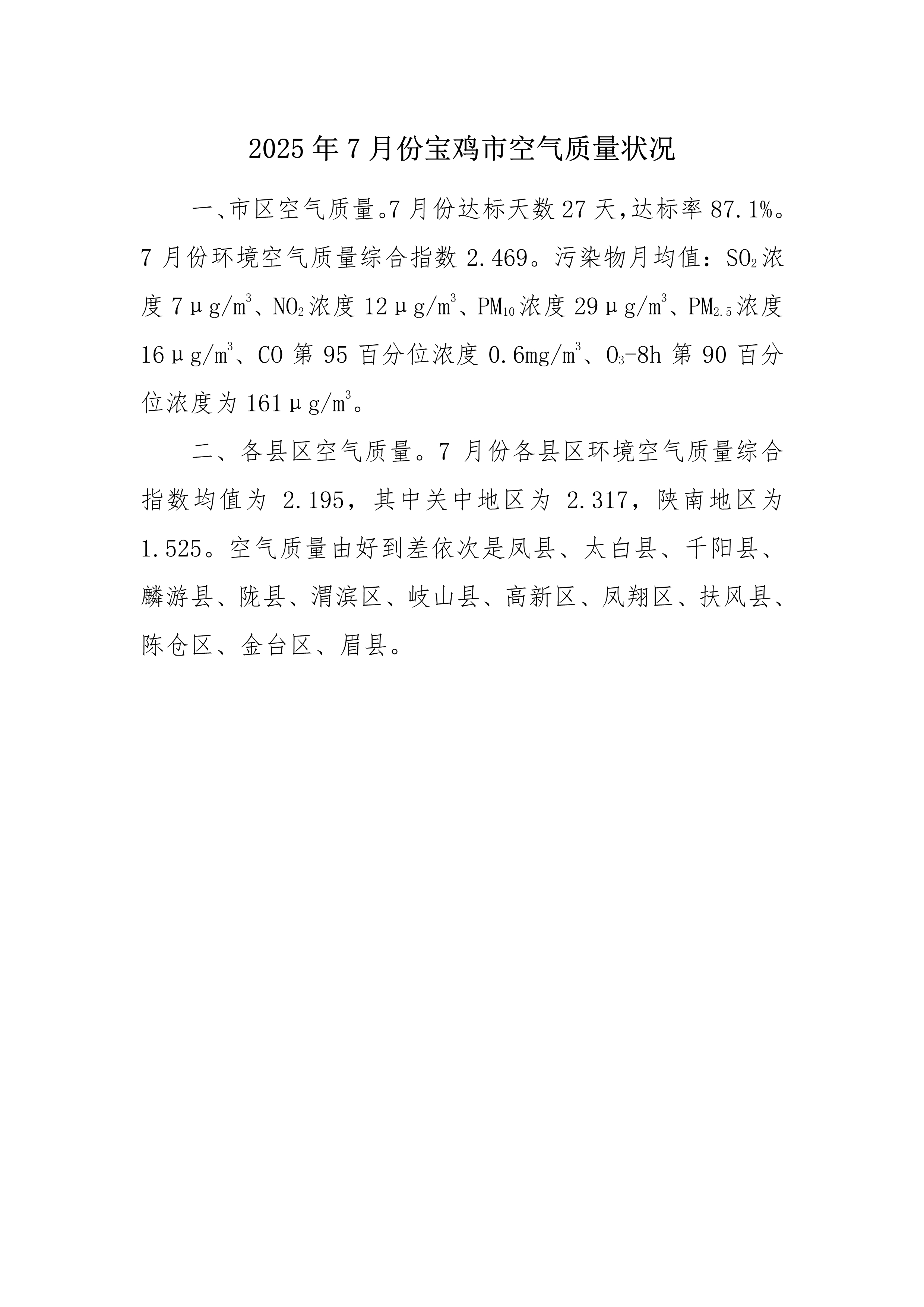 2025年7月份网赌平台空气质量状况