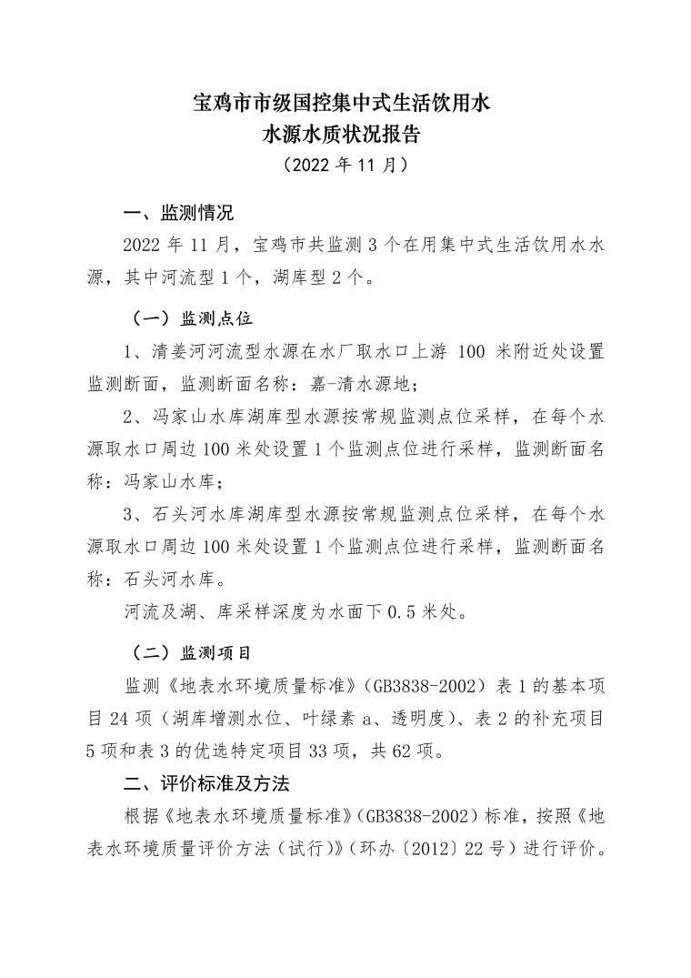 十大网赌平台排行榜市级国控集中式生活饮用水水源水质状况报告(2022年11月)