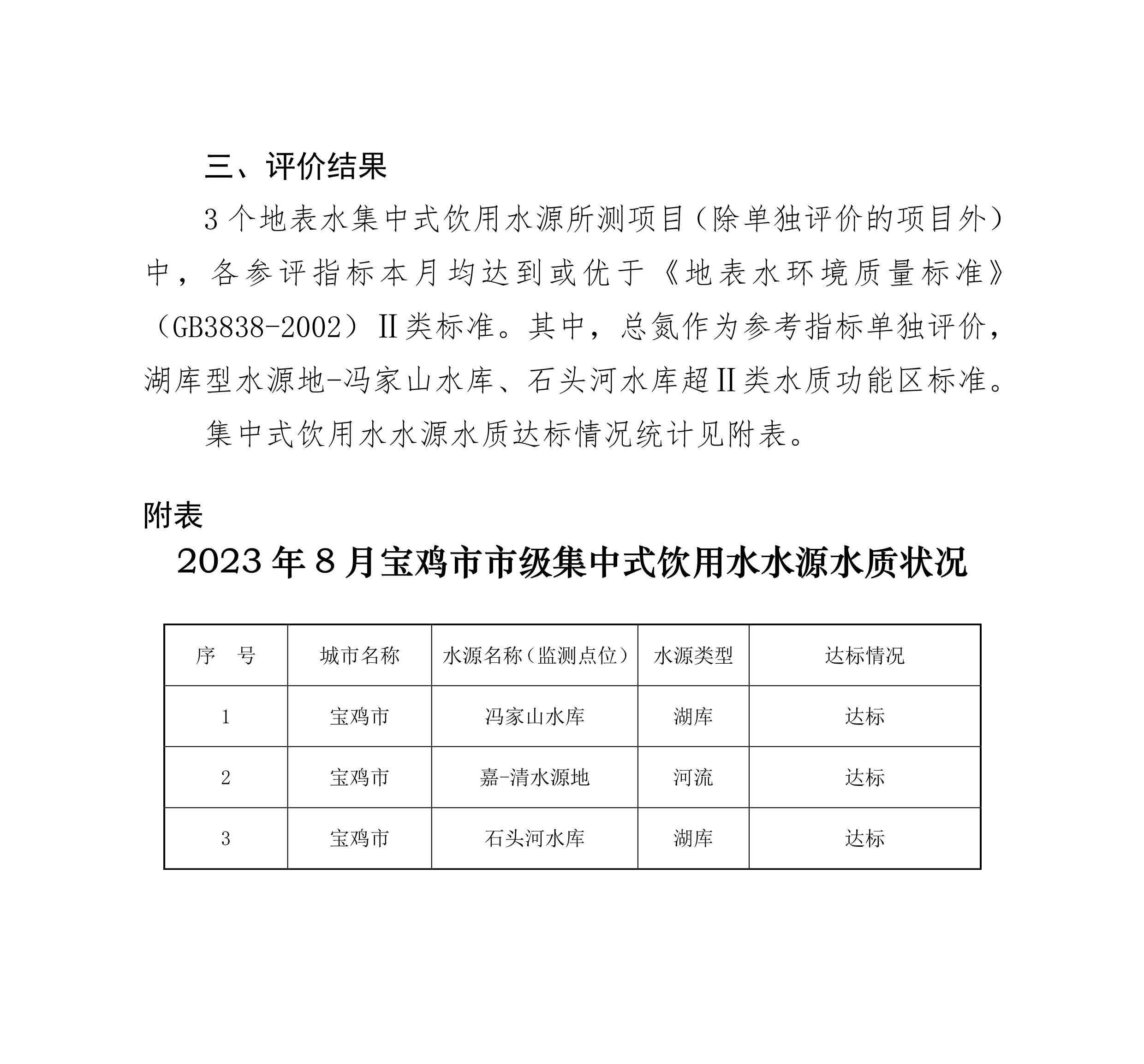 网赌平台市级国控集中式生活饮用水水源水质状况报告(2023年8月)